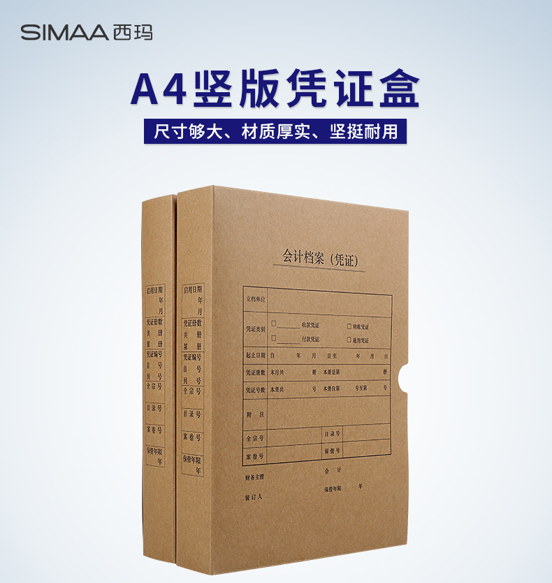 “SIMAA/西瑪”6501 A4憑證盒 單個裝(豎版220*305*50mm財務(wù)會計報銷單記賬憑證封面紙檔案裝訂盒)