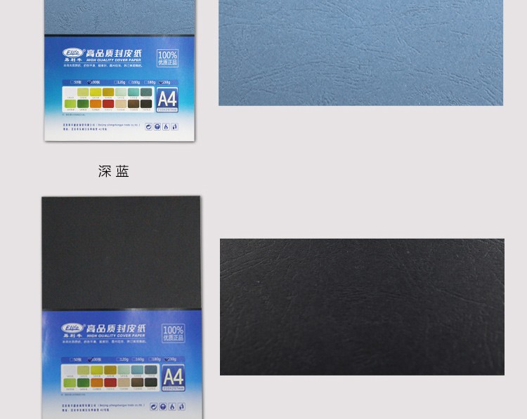 “elifo/易利豐”A4 160g 高品質(zhì)封皮紙 單包裝(淺藍(lán)色封面紙彩色皮紋紙?jiān)撇始垑杭y紙厚硬彩色卡紙100張/包)
