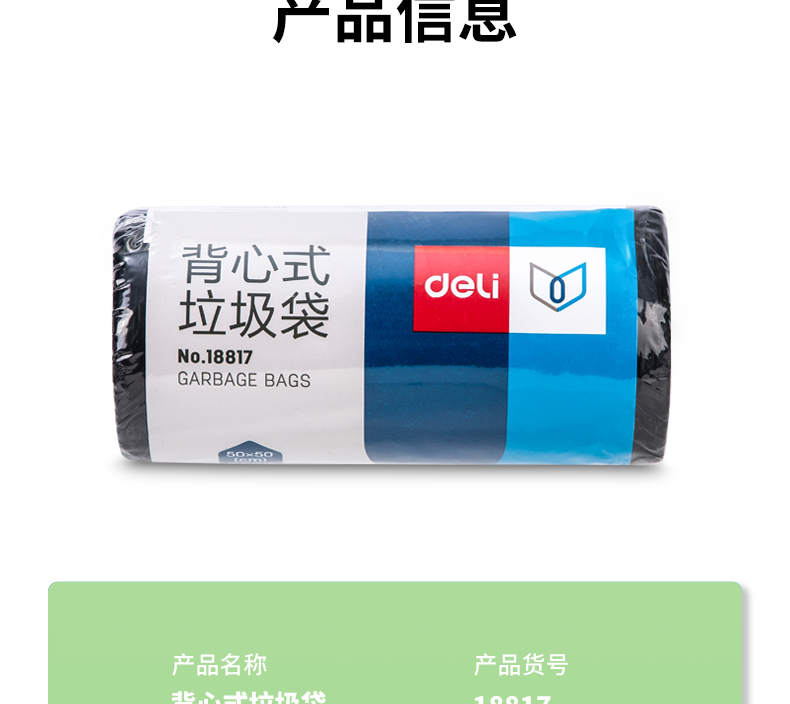 “deli/得力”No.18817 背心式垃圾袋 單卷裝(黑色50*50CM加厚垃圾桶袋清潔紙簍袋塑料袋30只/卷)