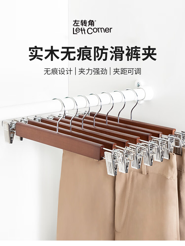 “ZUO ZHUAN JIAO/左轉(zhuǎn)角”LC-7-065 實(shí)木褲夾 單組裝(復(fù)古色曬衣褲架家用褲裙夾伸縮褲夾衣褲架5支/組)