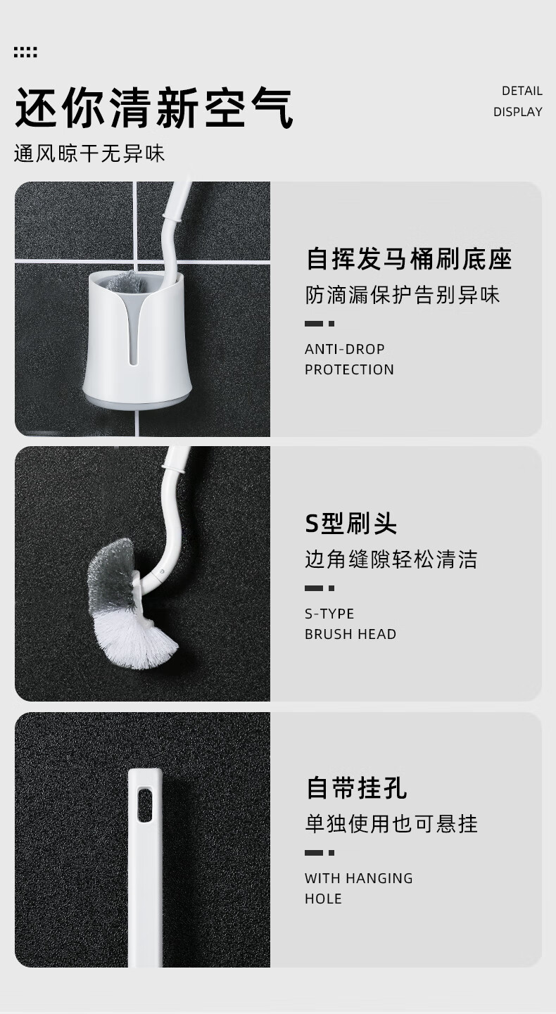 “shengni/晟旎尚品”長(zhǎng)39cm 無(wú)死角S形馬桶刷 單套裝(白色+灰色刷頭長(zhǎng)11.5cm日式帶底座廁所刷掛壁式衛(wèi)生間浴室潔廁刷清潔刷套裝)