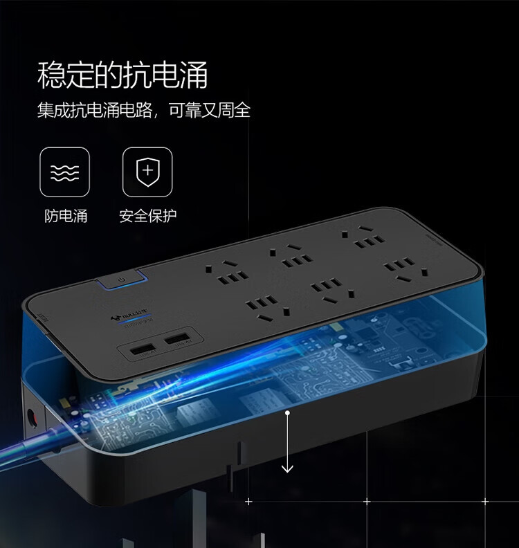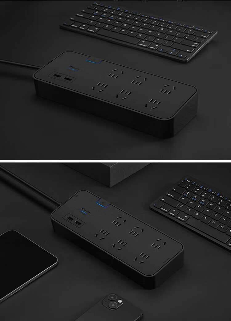 “BULL/公?!盙N-H306U 延長(zhǎng)線插座 單個(gè)裝(黑色1.8米總控開關(guān)6孔位帶雙USB抗電涌抗防浪涌插排排插拖線板插線板)