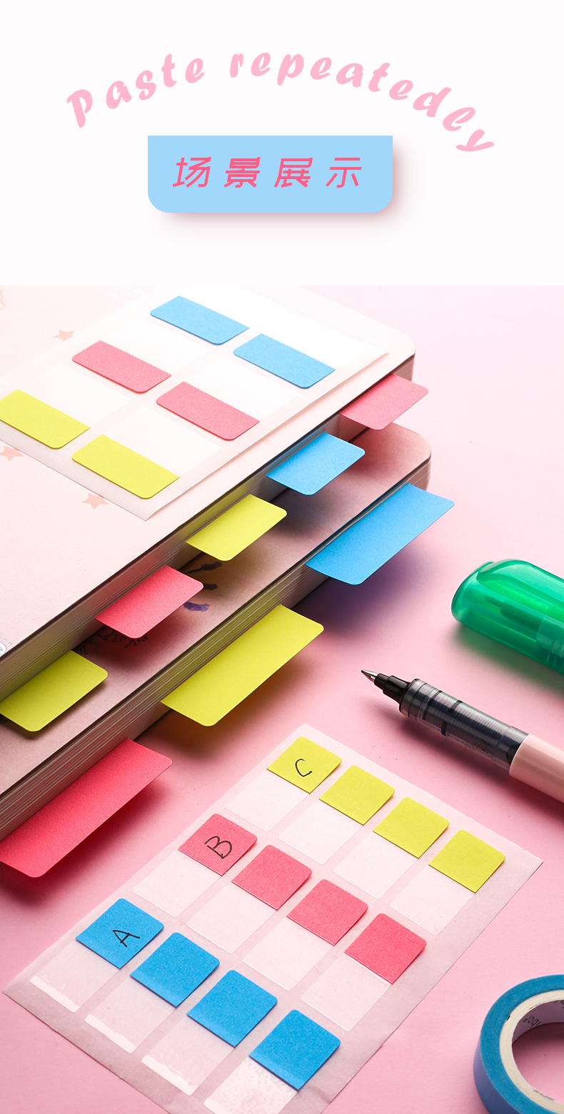 “金值”JK0061 索引貼 單包裝(彩色210枚大中小透明防水標簽貼紙指示熒光膜標記便簽小條書簽記號分類引索分頁粘性強便利貼N次貼)