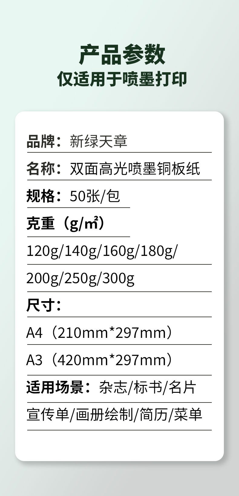 A3 雙面噴墨高光銅版相片紙 140G 50頁(yè)/包 *1包
