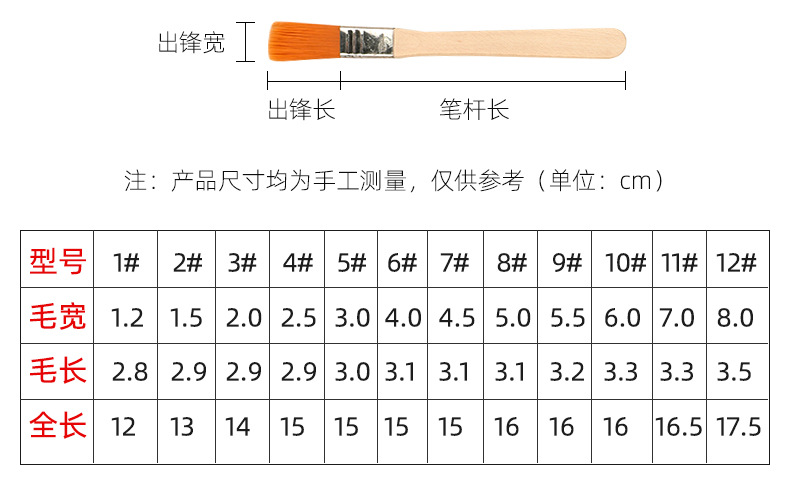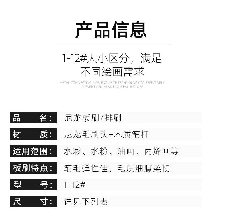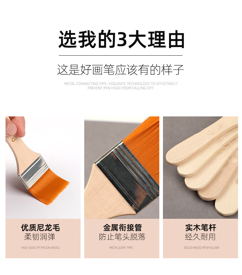 “BO TE TI/鉑特體”6號 尼龍毛板刷 單把裝(黃色繪畫刷油漆刷墻漆清理木柄毛刷畫筆尼龍刷)
