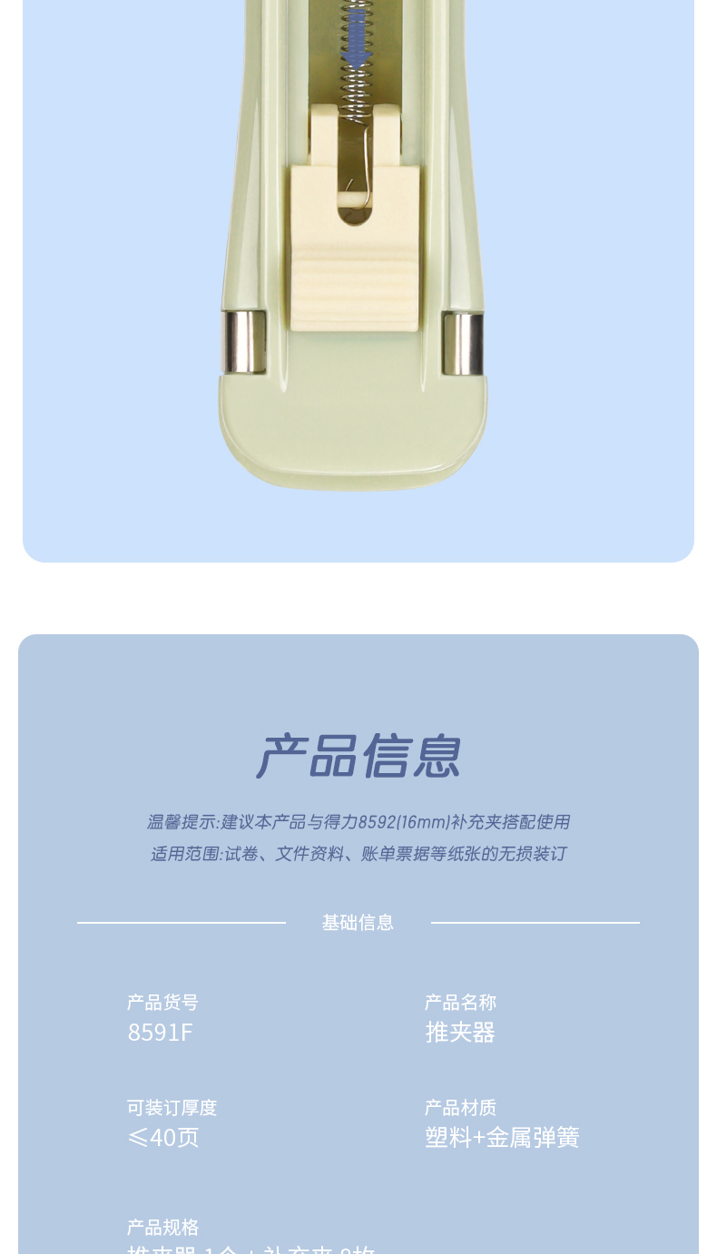得力8591F因為遇見你推夾器(綠)(1推夾器+8補(bǔ)充夾)*1
