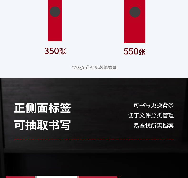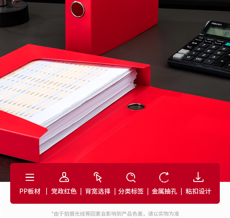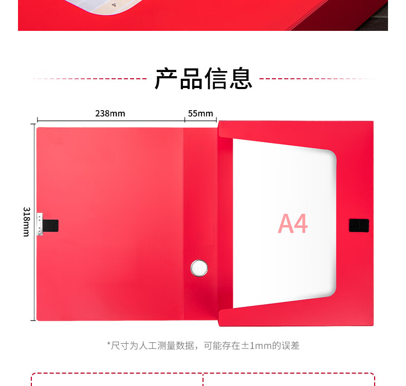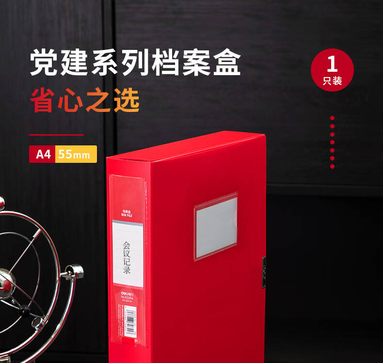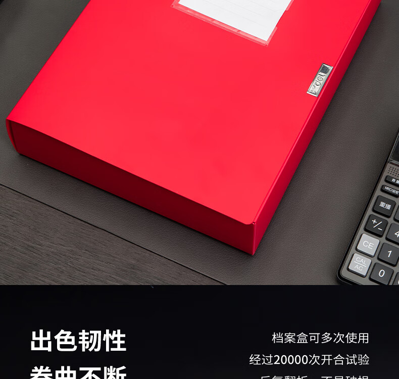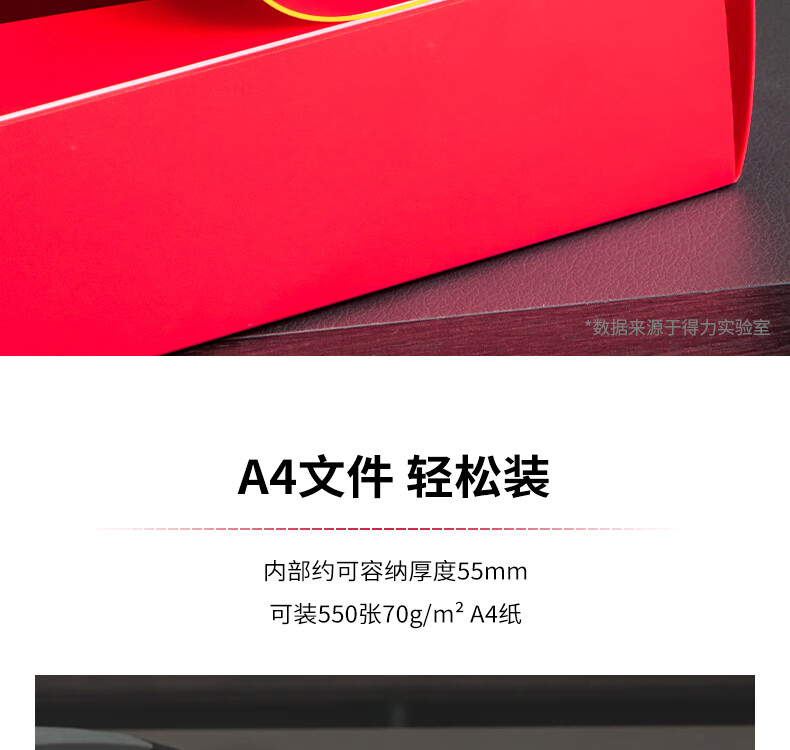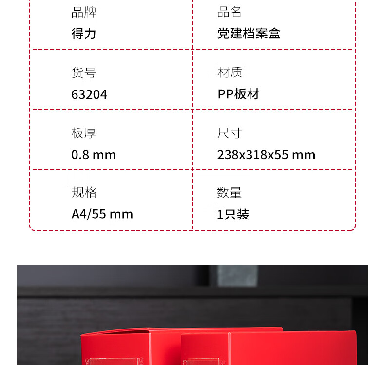 “deli/得力”No.63204 檔案盒 單個裝(紅色A4/55mm粘扣塑料文件盒資料盒憑證文件收納盒財(cái)會用品辦公用品)