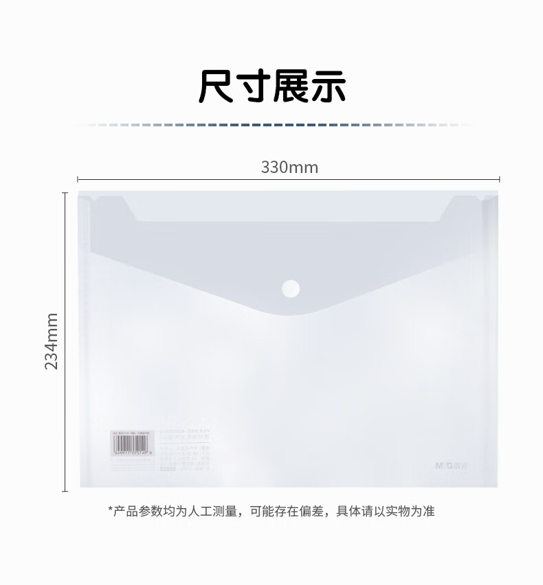 “M&G/晨光”ADM929YR A4透明紐扣袋 單個(gè)裝(按扣塑料防水檔案袋學(xué)生桌面透明文件袋試卷收納學(xué)科分類20只/包)