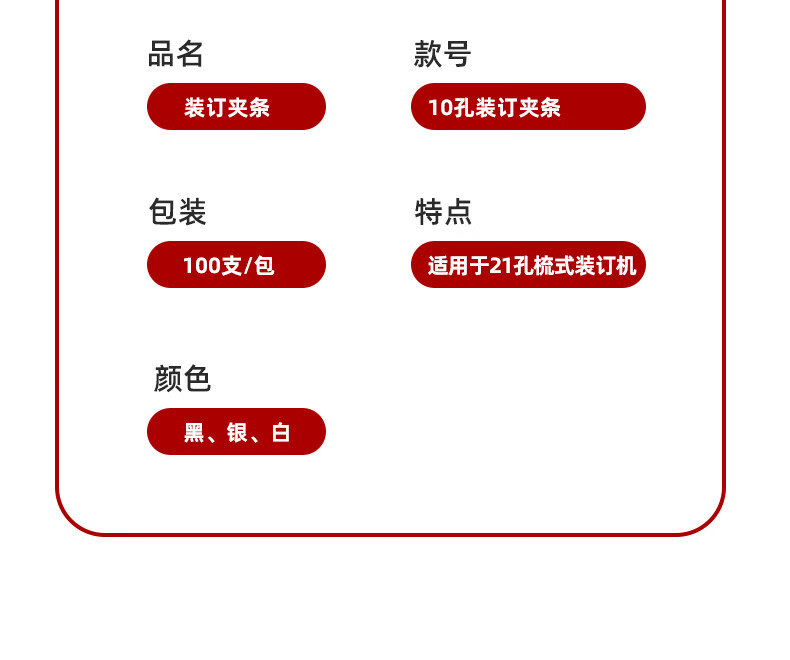 “LEACHIN/力晴”32.5mm 裝訂夾條 單盒裝(10孔50支/盒)