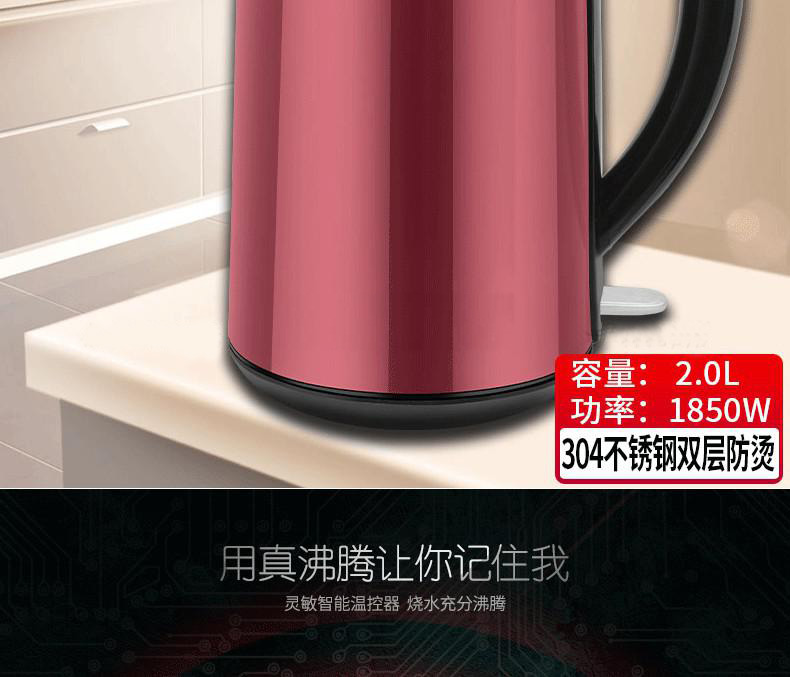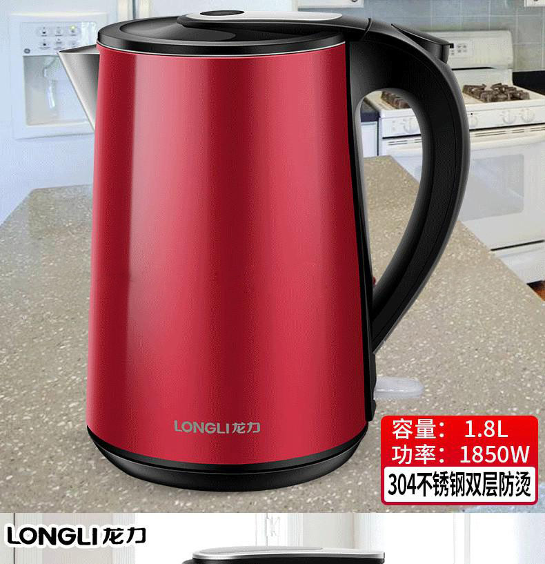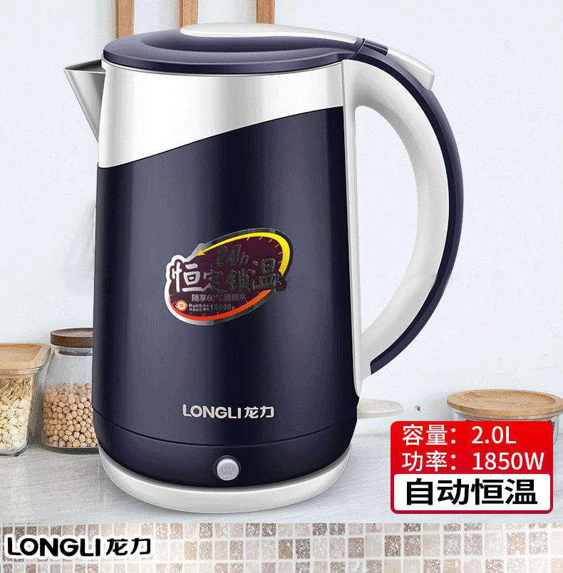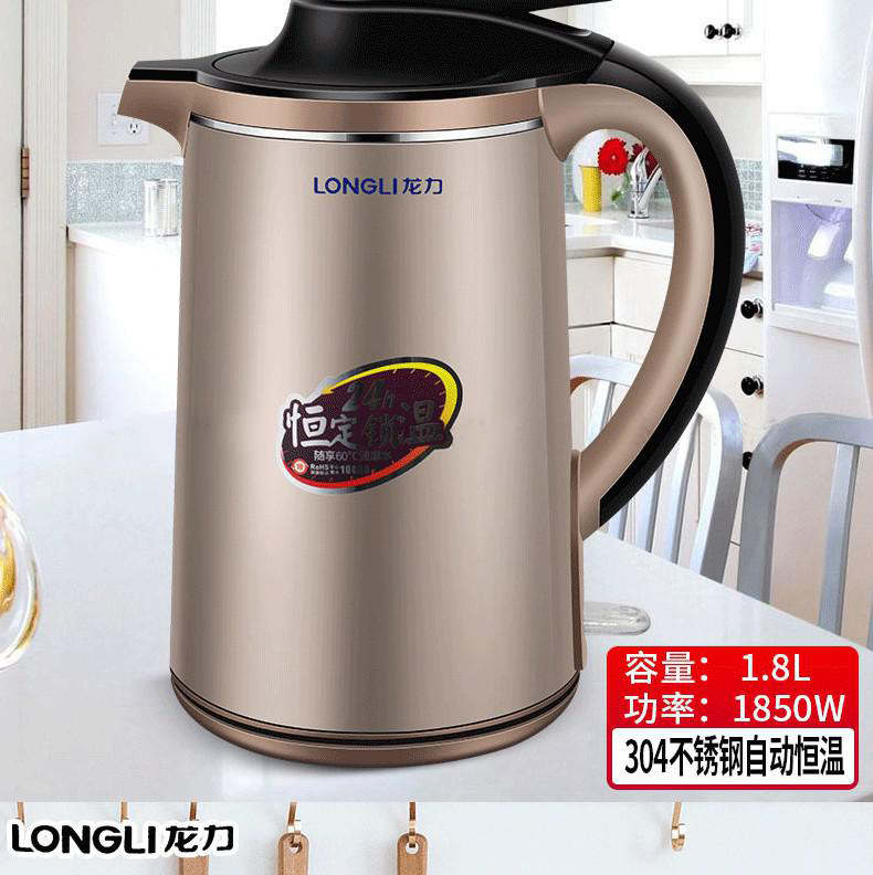 “LONGLI/龍力”LL-8811 電熱水壺 1個裝(白色304不銹鋼恒保溫全自動斷電家用大燒1.8L升雙層防燙)