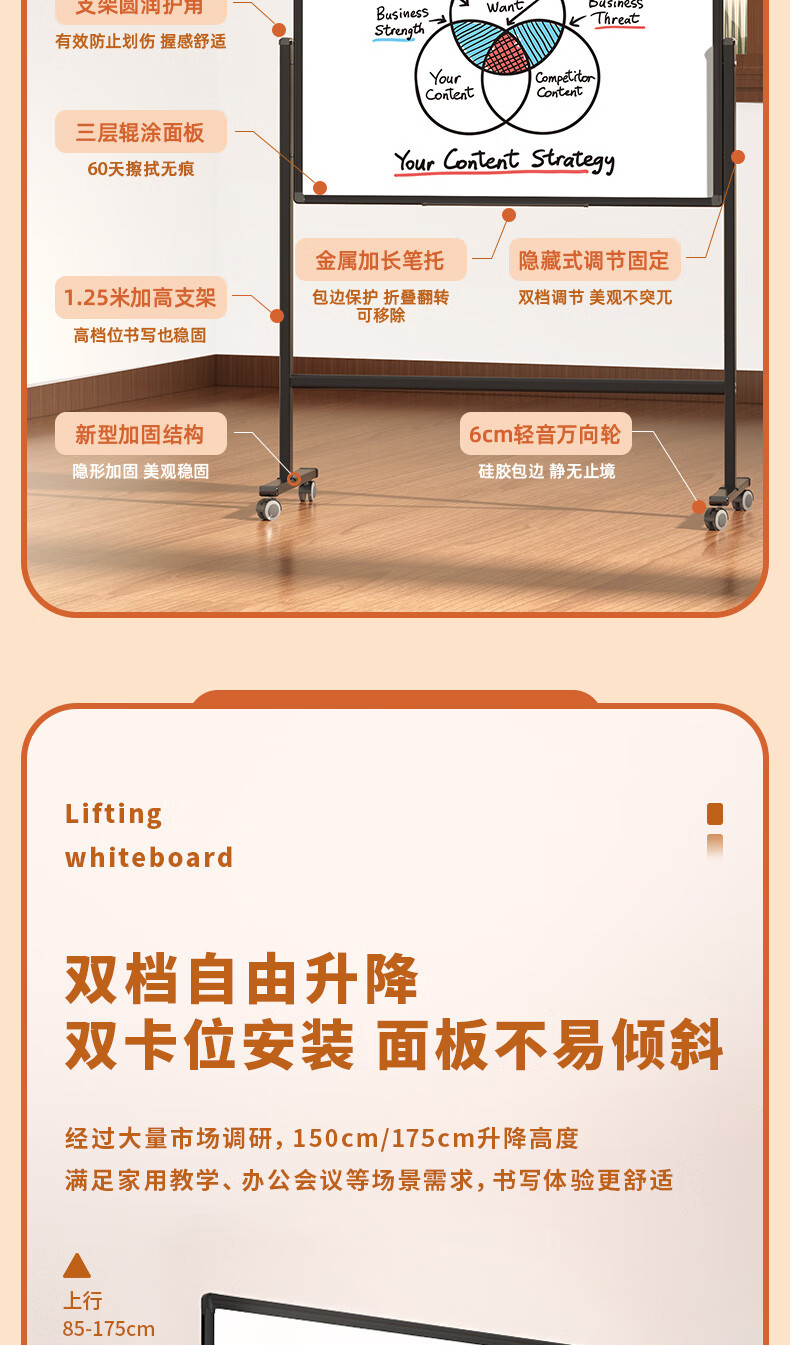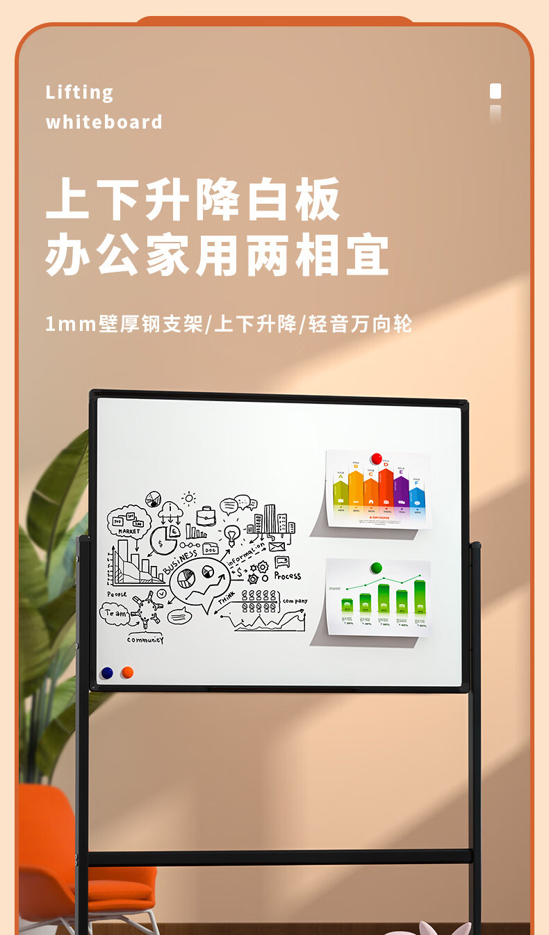 得力33725_H型可升降白板1200*900mm(黑色)(塊)×1