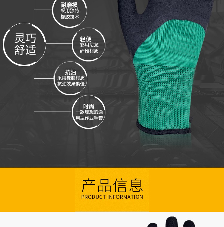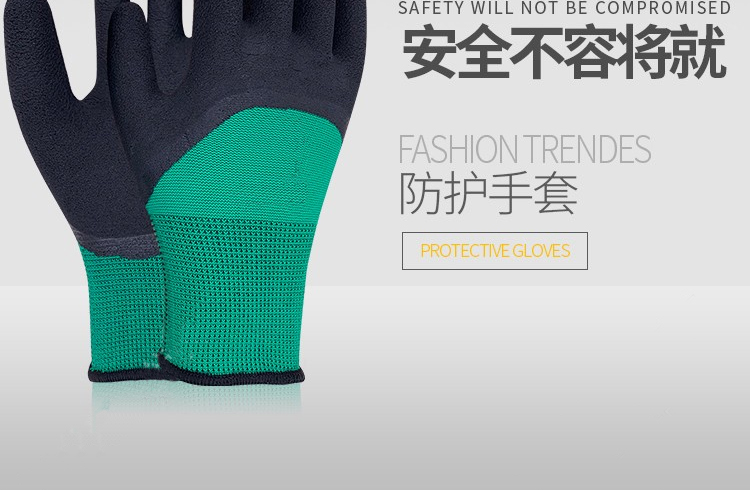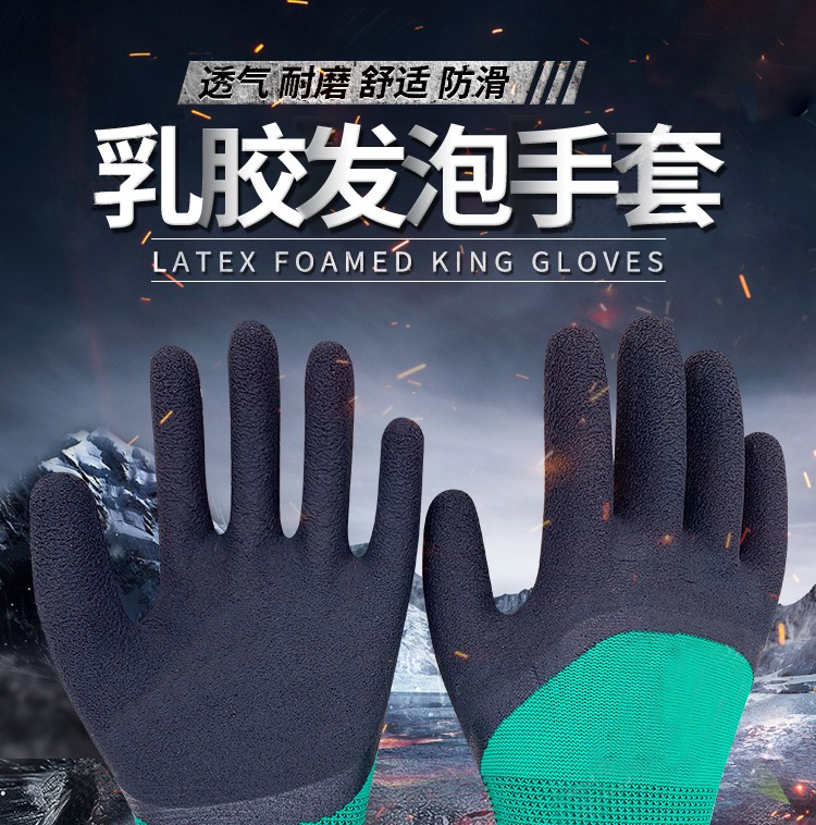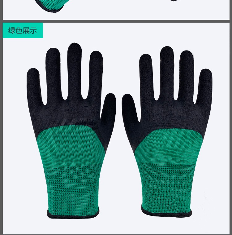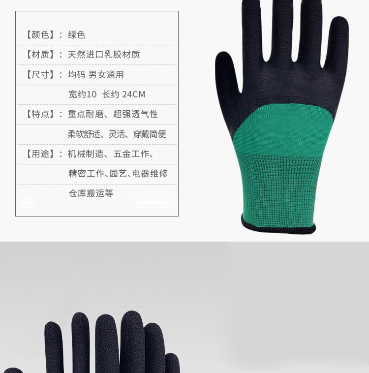 “MINGGU/鳴固”均碼 浸膠發(fā)泡手套 1付裝(綠色皺紋乳膠掛膠半掛防滑耐磨防油膠皮工業(yè)勞保)