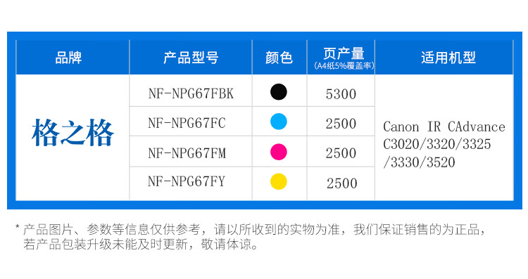 “G&G/格之格”NF-NPG67FM 復(fù)印機粉筒 單個裝(紅色NPG-67M粉盒適用佳能3020 3320 3325 3330 3520系列)