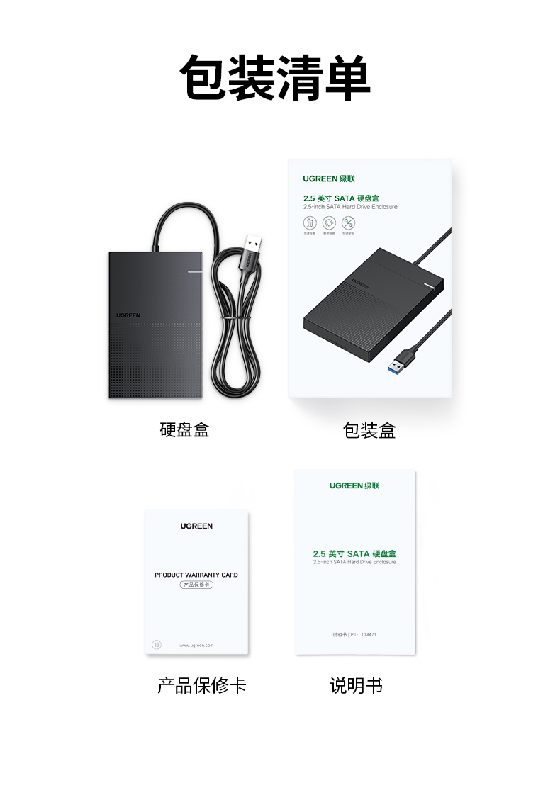 硬盤盒*1 包裝盒*1 產(chǎn)品保修卡*1 說(shuō)明書*1