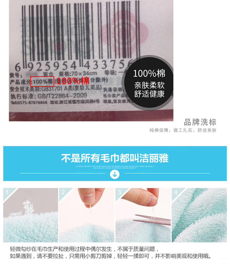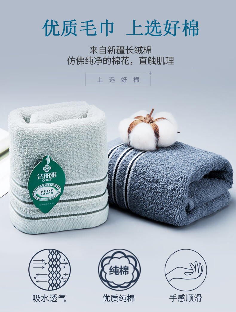 “Grace/潔麗雅”7377 毛巾 單條裝(顏色隨機(jī)純棉3A級(jí)抗菌柔軟強(qiáng)吸水洗臉洗澡擦臉巾)