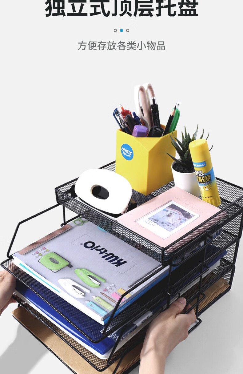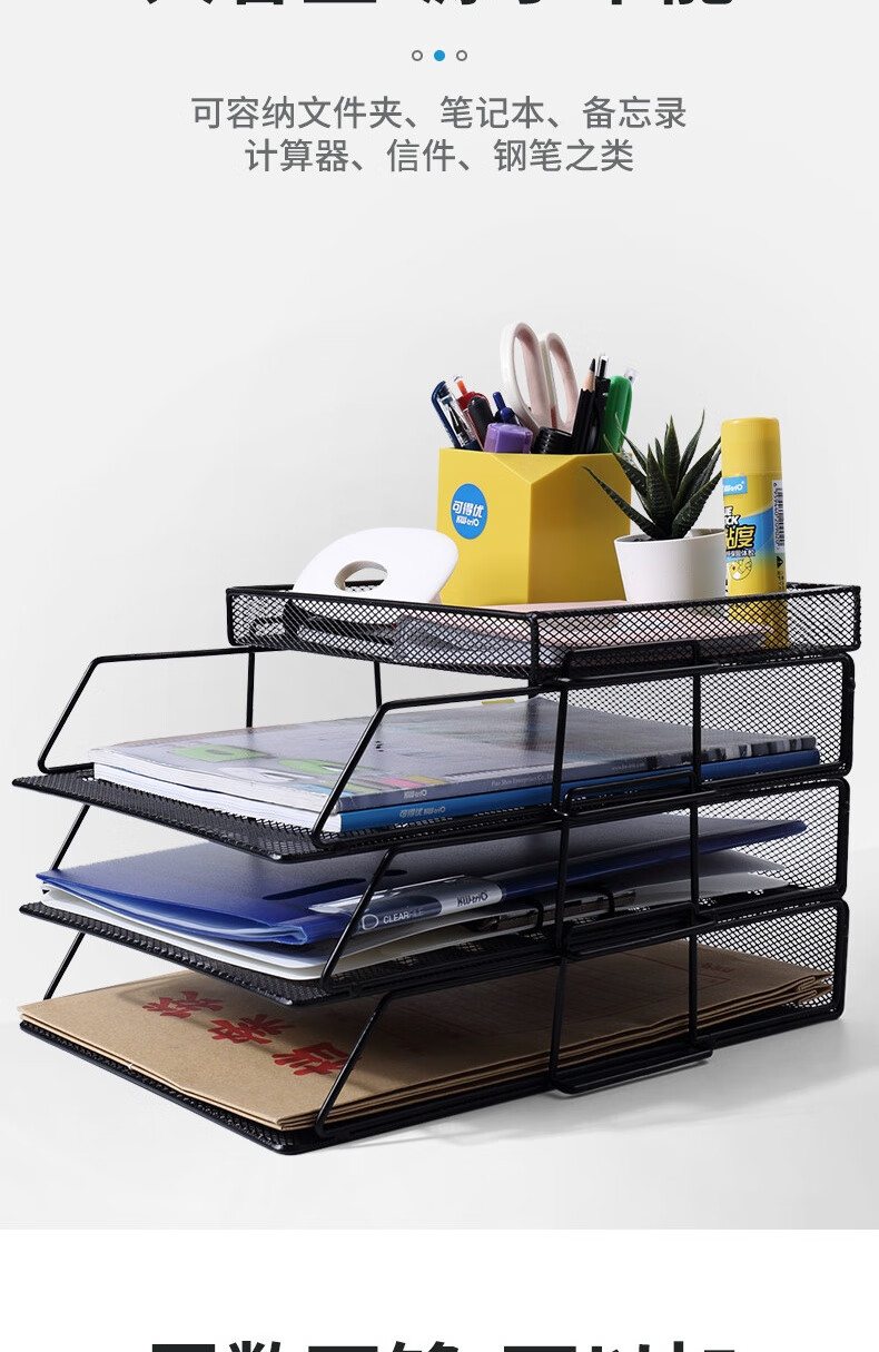 “KW-triO/可得優(yōu)”KDY-WJJ008 多層文件籃 單個(gè)裝(7層含托盤桌面鐵網(wǎng)金屬烤漆文件架子文件欄文件筐文件框文件盤資料架)