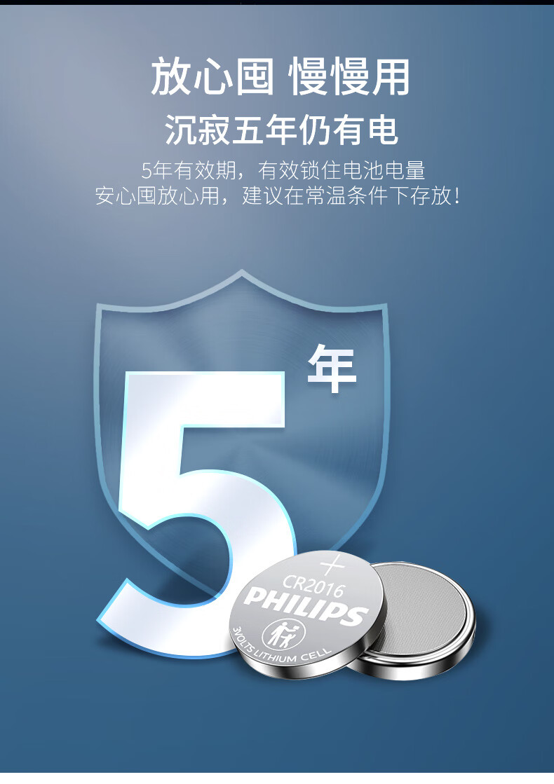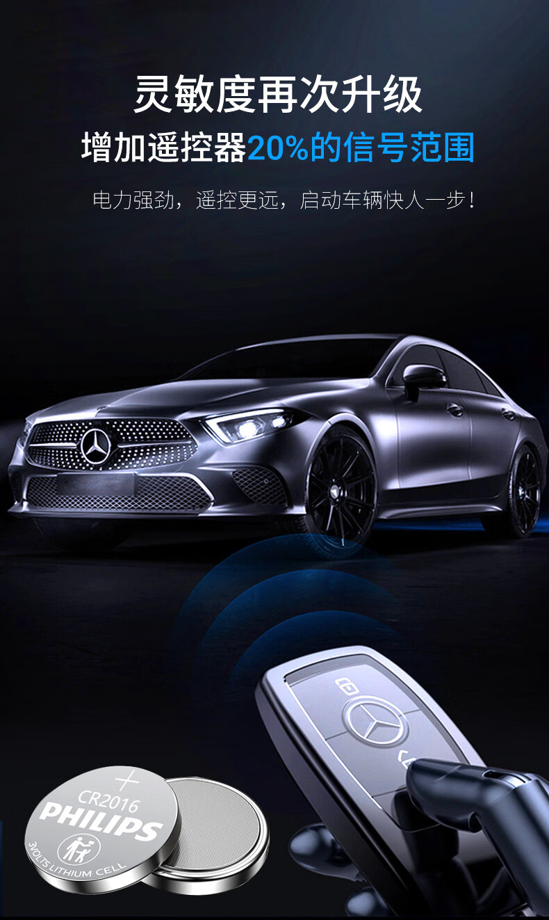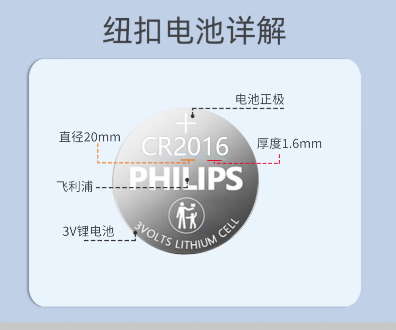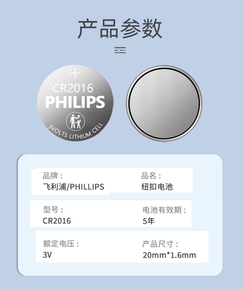 “PHILIPS/飛利浦”CR2016P2BC/93 紐扣電池 單卡裝(3V鋰電池適用豐田比亞迪奔馳景逸等汽車鑰匙遙控器手表血糖儀電池2粒/卡)