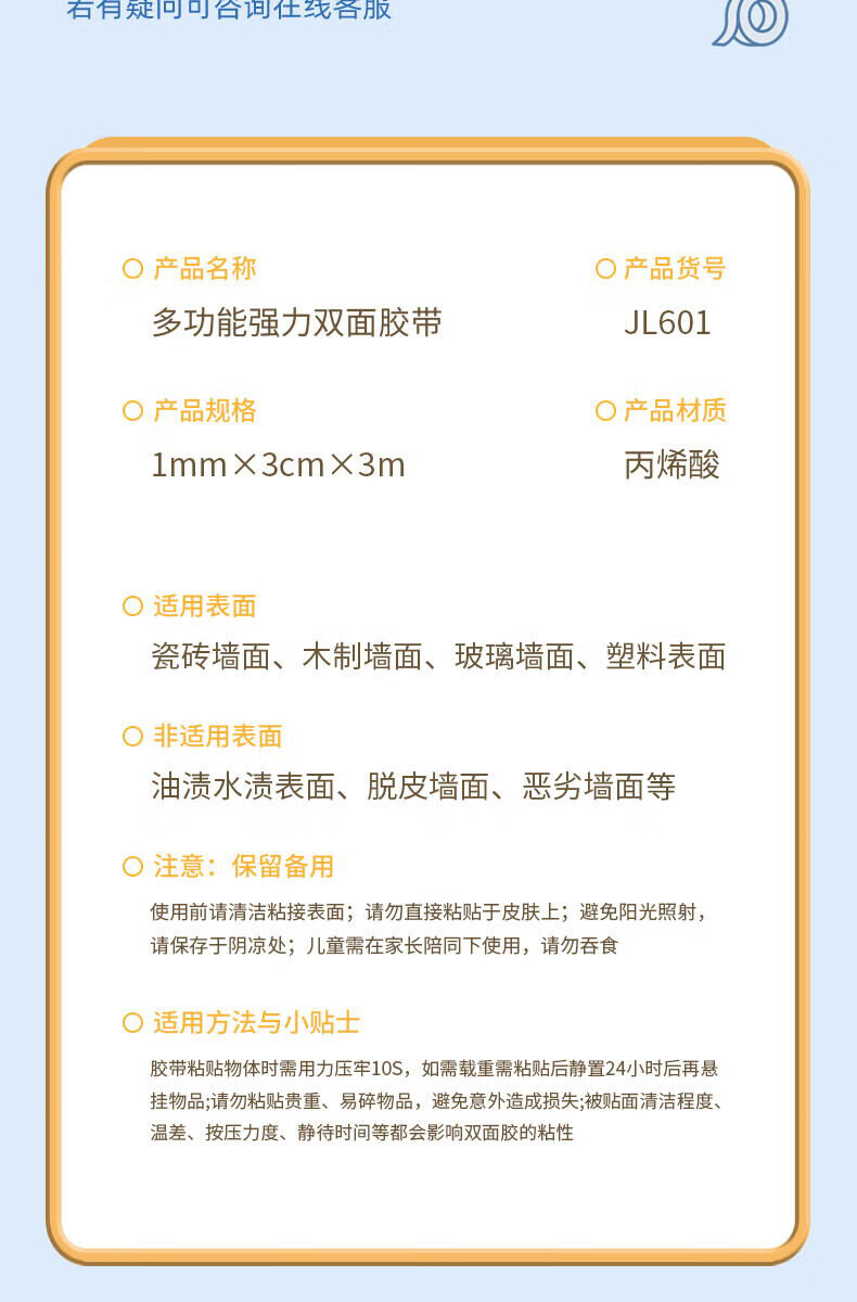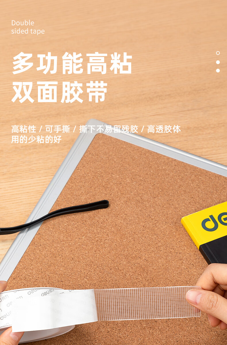 “deli/得力”No.JL601 多功能強力雙面膠帶 1個裝(透明30mm*3m納米無痕魔力加強網(wǎng)格款家用車用無痕固定雙面膠海報貼春聯(lián)貼)