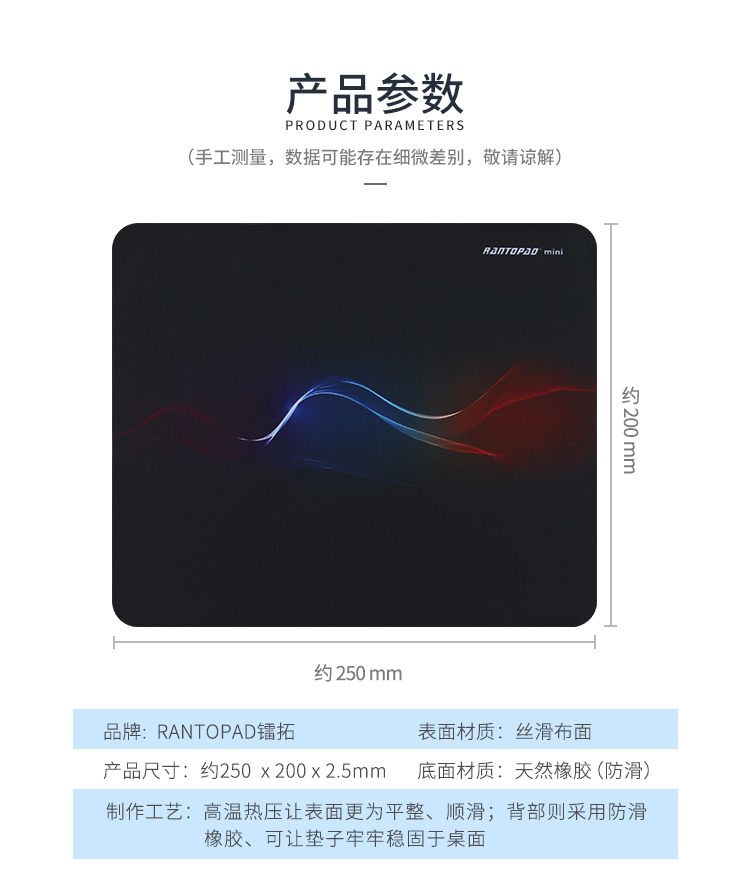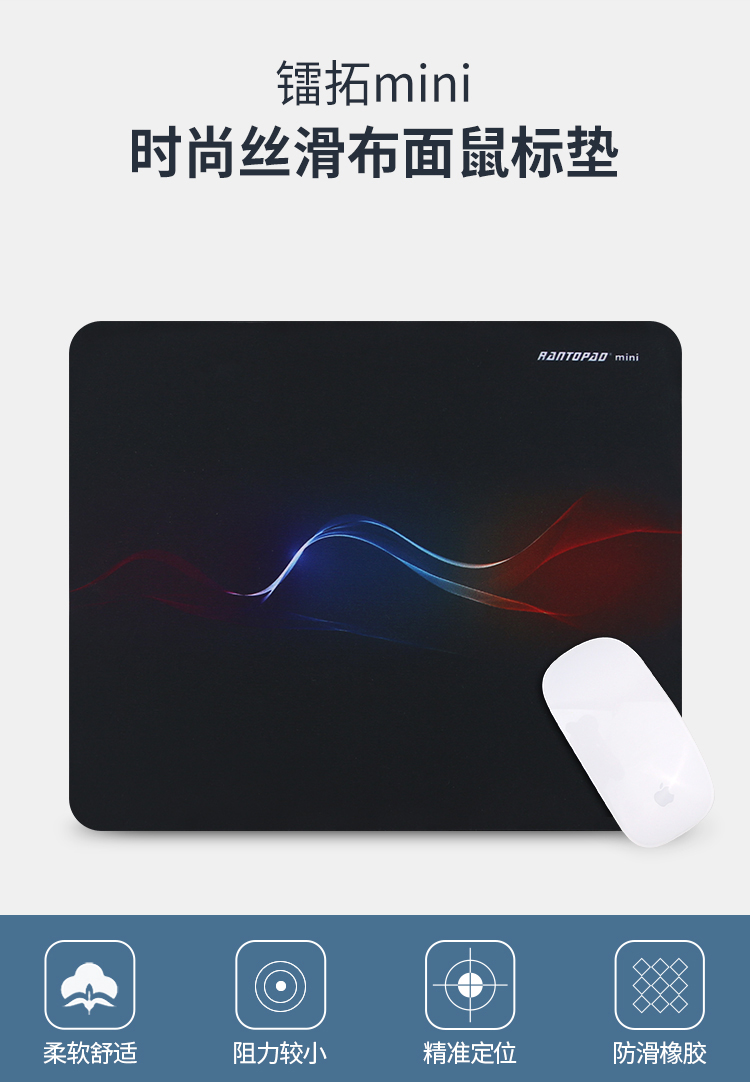 “Rantopad/鐳拓”H1 鼠標墊 單個裝(小號mini曲線橡膠布面便攜筆記本電腦辦公250*200*2.5mm)