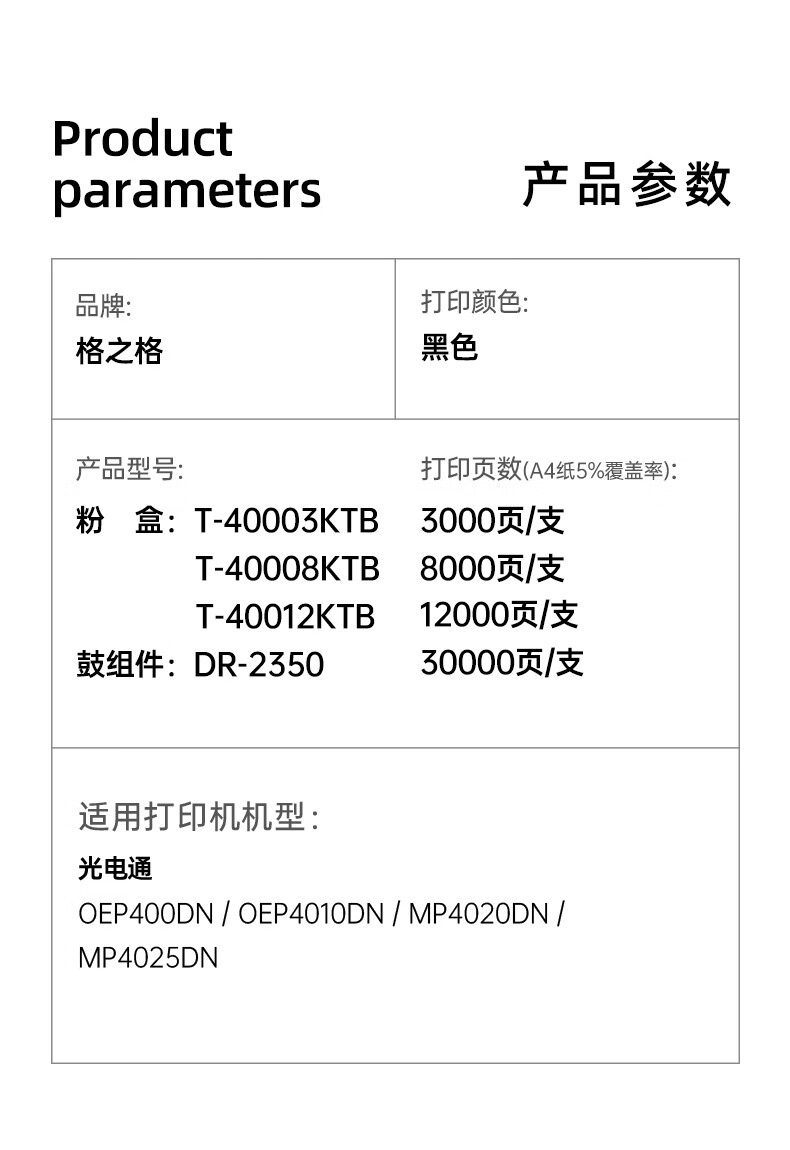 “G&G/格之格”T-40003KTB 激光碳粉盒 單支裝(黑色適用光電通OEP400DN OEP4010DN墨盒MP4020DN打印機MP4030DN)