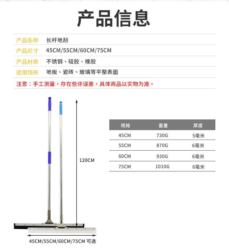 不銹鋼桿地刮-黑色橡膠款45CM