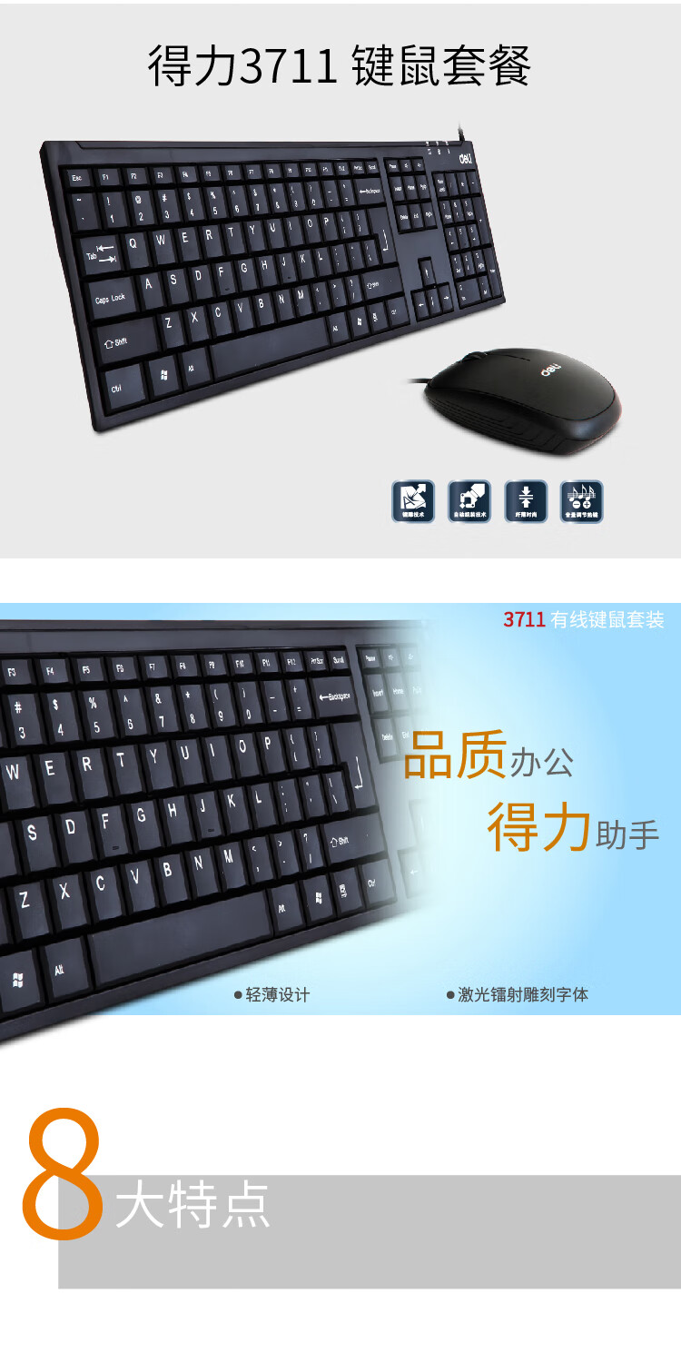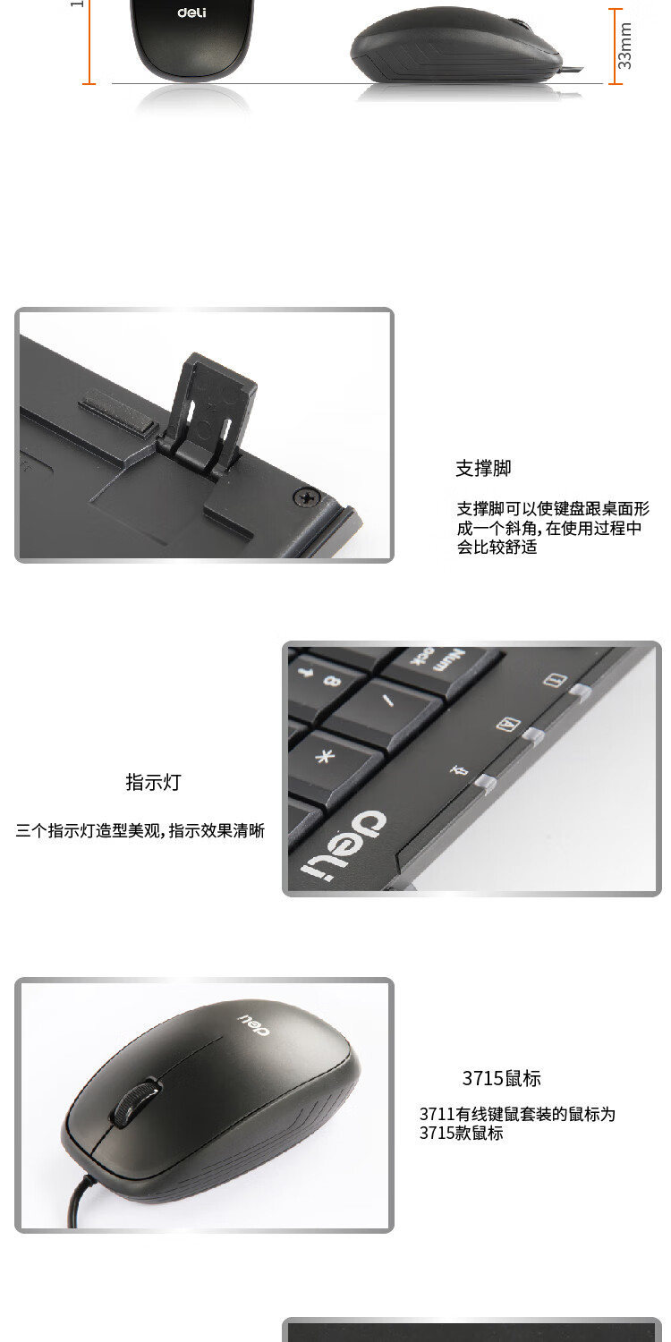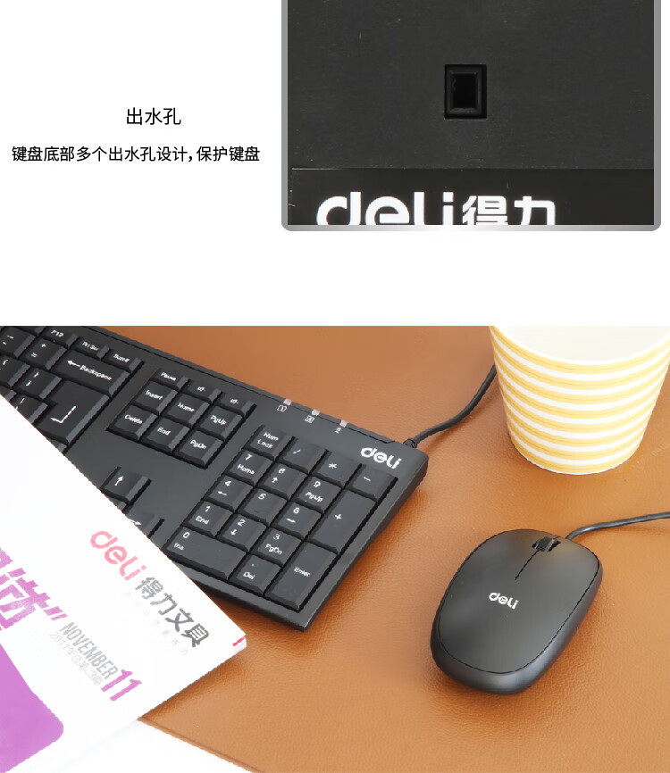 “deli/得力”No.3711 有線鍵鼠套裝 1盒裝(黑色USB鍵盤+鼠標(biāo))