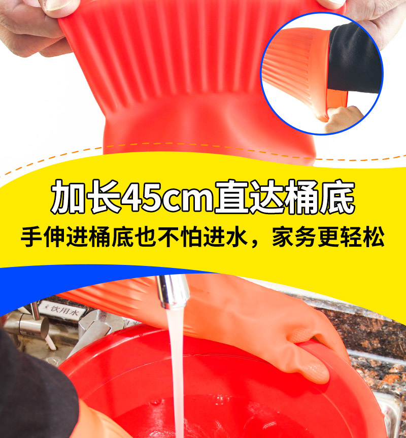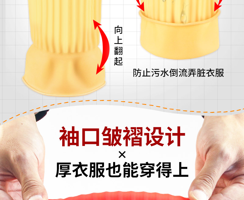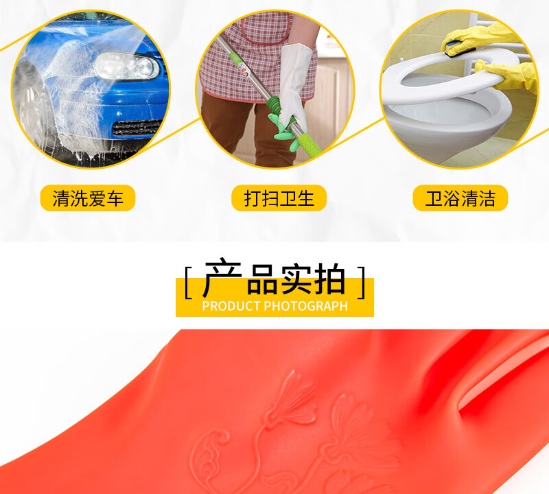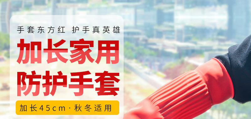 “DONGFANGHONG/東方紅”DFH-102 防護手套 單組裝(黃色DFH116洗碗手套女防水橡膠加厚廚房耐用型洗衣衣服膠皮家務(wù)刷碗家務(wù)中號M 5雙/組)