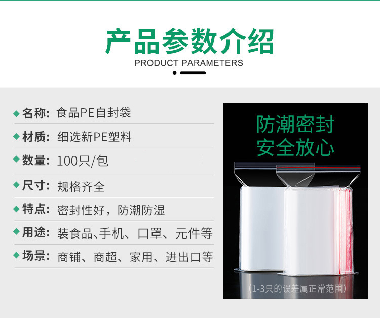 “DENGBI/登比”DB-ZFD-1015 食品PE自封袋 單包裝(透明5號10*15封口包裝密封袋封口袋樣品塑封袋分裝袋100只/包)