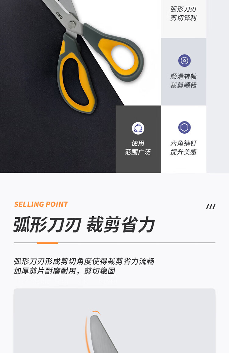 “deli/得力”No.77762 剪刀 單把裝(黃色210mm辦公生活不對稱款握感舒適)