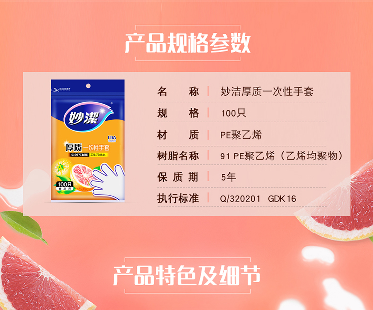 “MIAOJIE/妙潔(妙潔)”MDG100-D 厚質一次性手套 單包裝(抽取式厚實餐桌野炊100只/包)