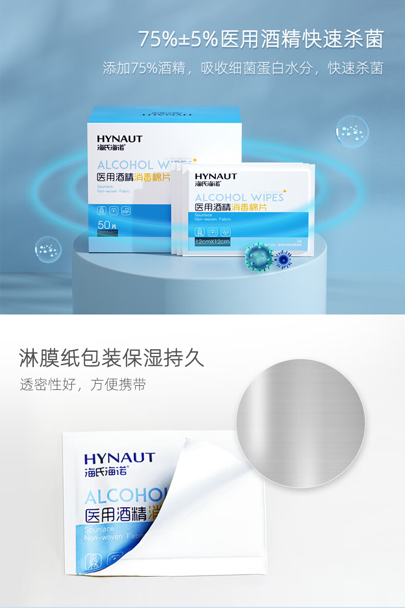 “HAINUO(HYNAUT)/海氏海諾”6cmx6cm 酒精消毒棉片 單盒裝(醫(yī)用75%酒精棉片一次性創(chuàng)口消毒旅行清潔100片/盒)