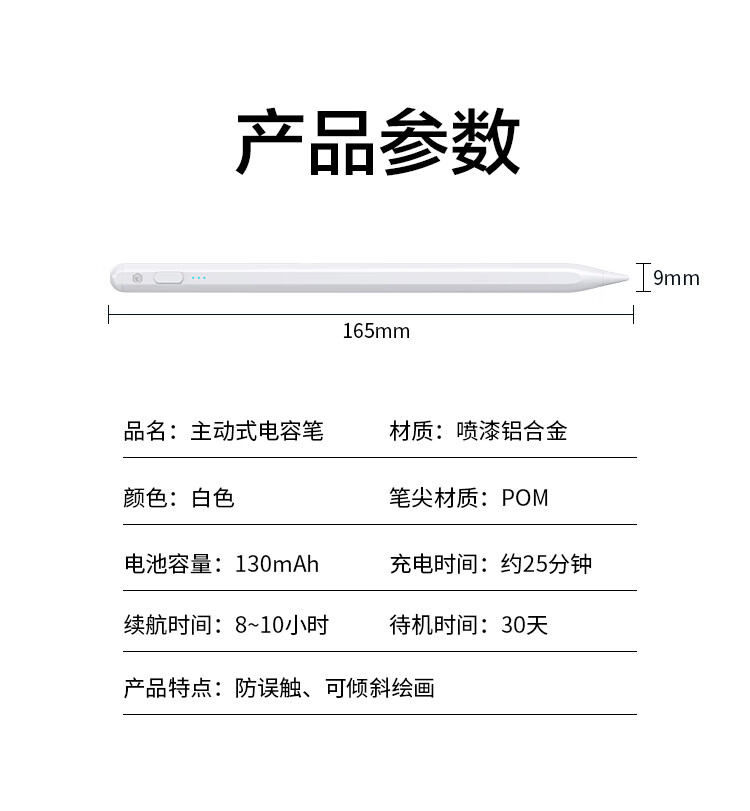 主動(dòng)式電容筆-白色*1, POM筆尖*2,Type-C充電線*1,說明書*1