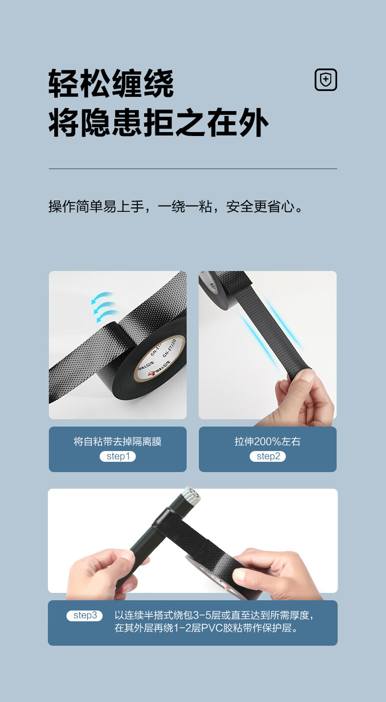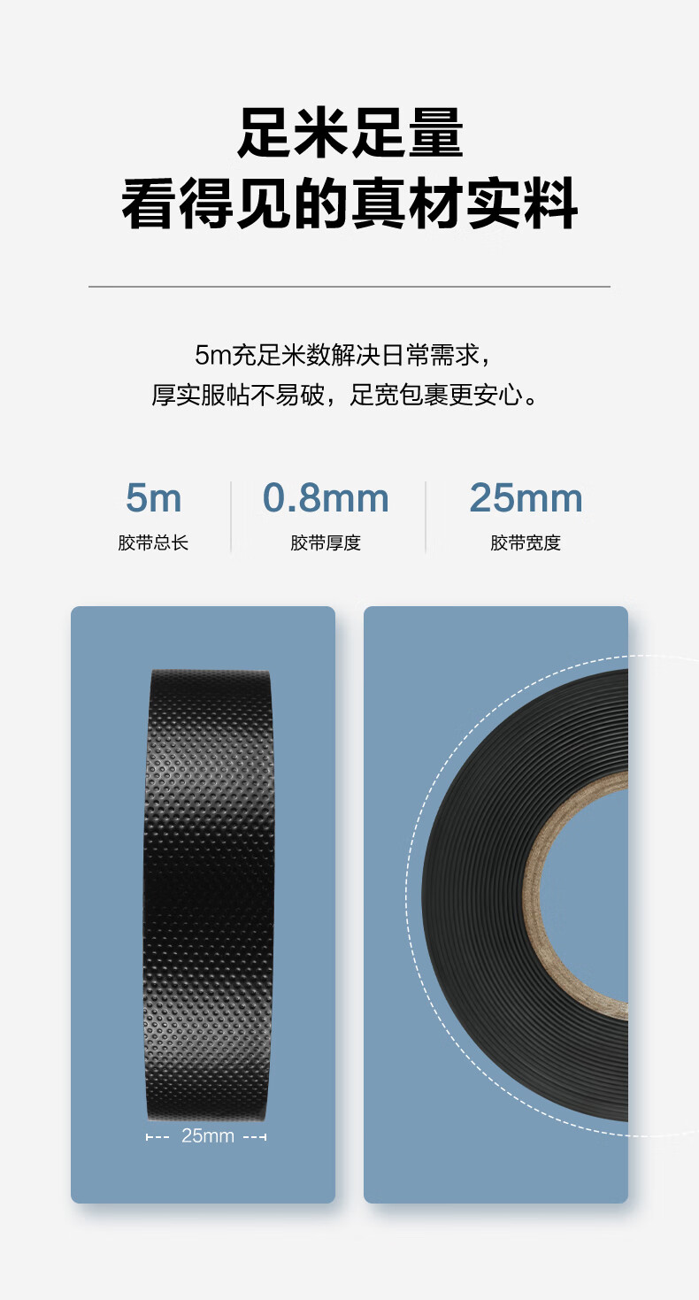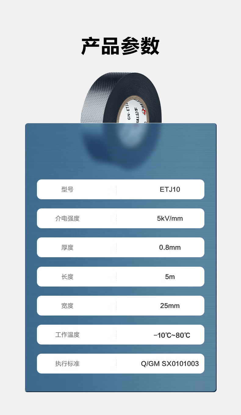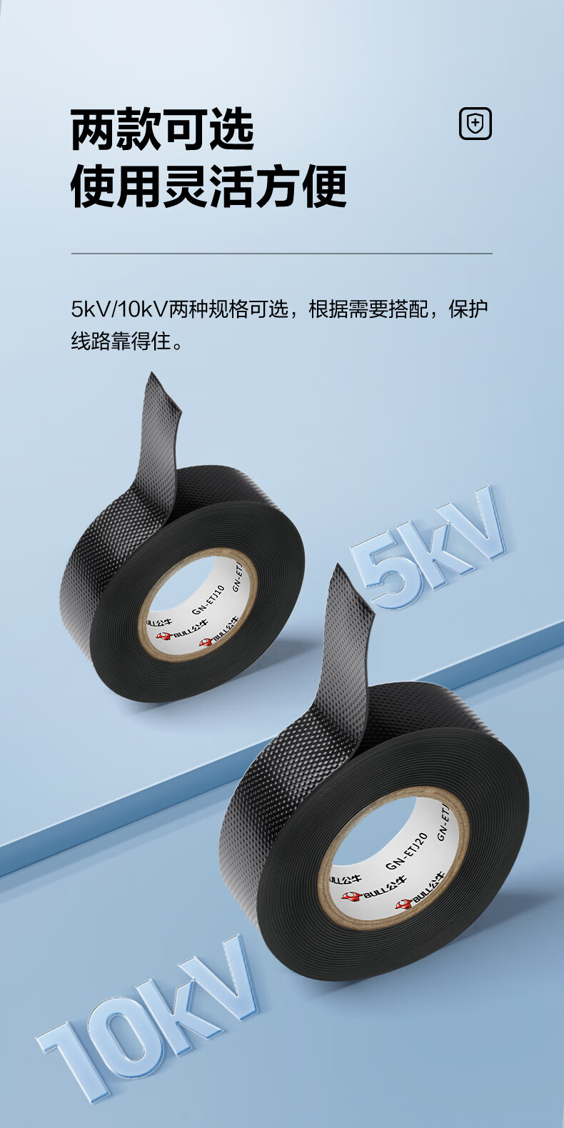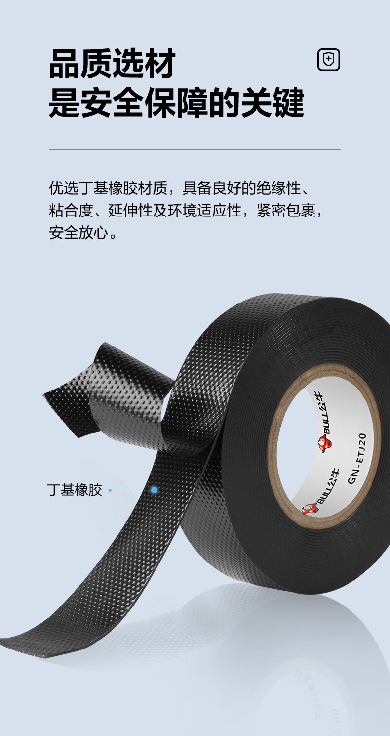 “BULL/公?!盙N-ETJ20 高壓絕緣自粘帶 單卷裝(黑色10kv防水電工膠布5m*25mm*0.8mm 10卷/組)