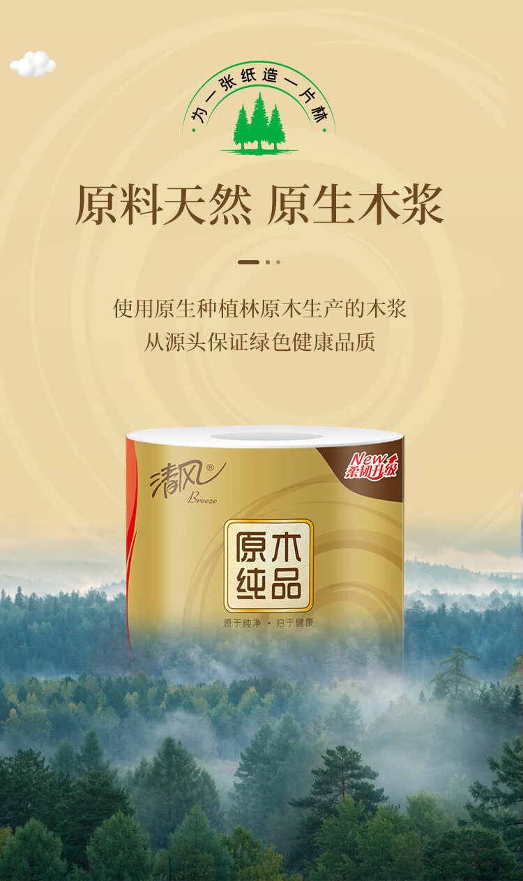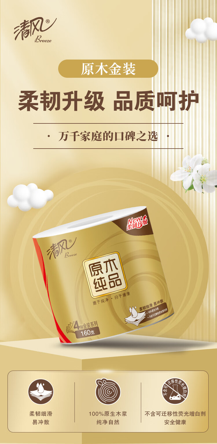 “APP/清風(fēng)”B20A6J2 衛(wèi)生紙 單提裝(原木純品金裝系列紙巾卷紙卷筒紙4層加厚160克/卷10卷/提1600)