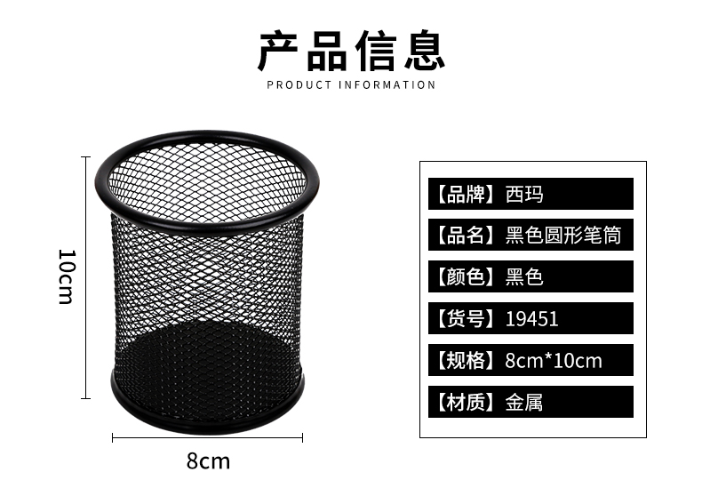 “SIMAA/西瑪”8136 筆筒 單個裝(黑色圓形網(wǎng)紋防銹辦公金屬創(chuàng)意簡約桌面收納)