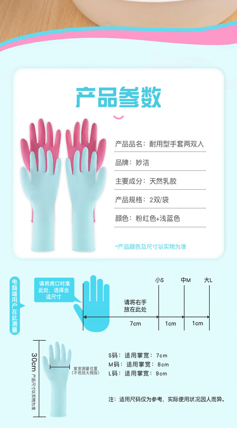 “MIAOJIE/妙潔(妙潔)”MGDL-C 絨里手套 單副裝(顏色隨機(jī)L大號耐用型保暖家務(wù)洗碗洗衣橡膠乳膠噴絨內(nèi)里防打澀2副/包)
