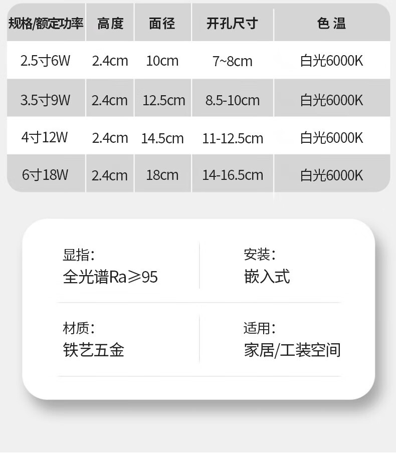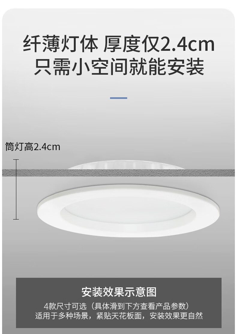 “燈靈”JDTD152 筒燈 單個裝(全光譜led嵌入式超薄客廳過道寫字樓商用圓形吊頂天花燈12W白光14.5cm-開孔11-12.5cm)