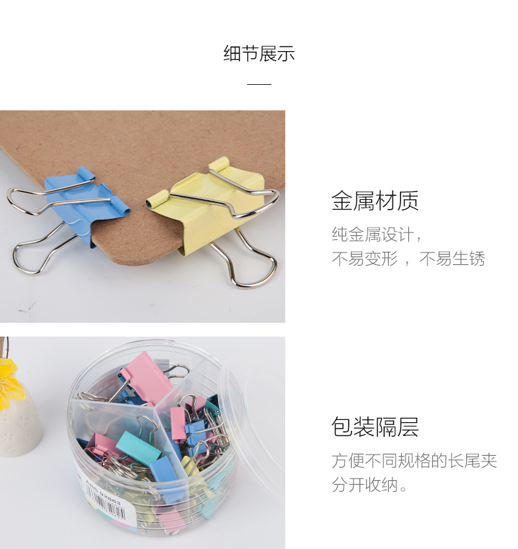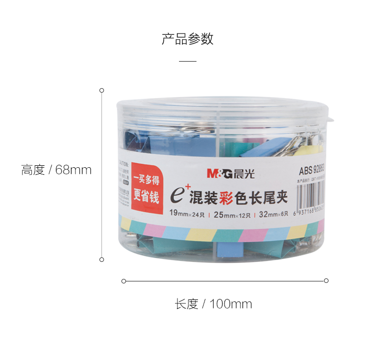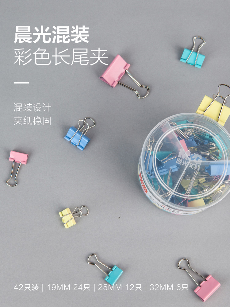 “M&G/晨光”ABS92863 混裝彩色長尾夾 單筒裝(Eplus系列多規(guī)格金屬票據(jù)燕尾夾夾辦公用品19mm*24/25mm*12/32mm*6 42個/筒)