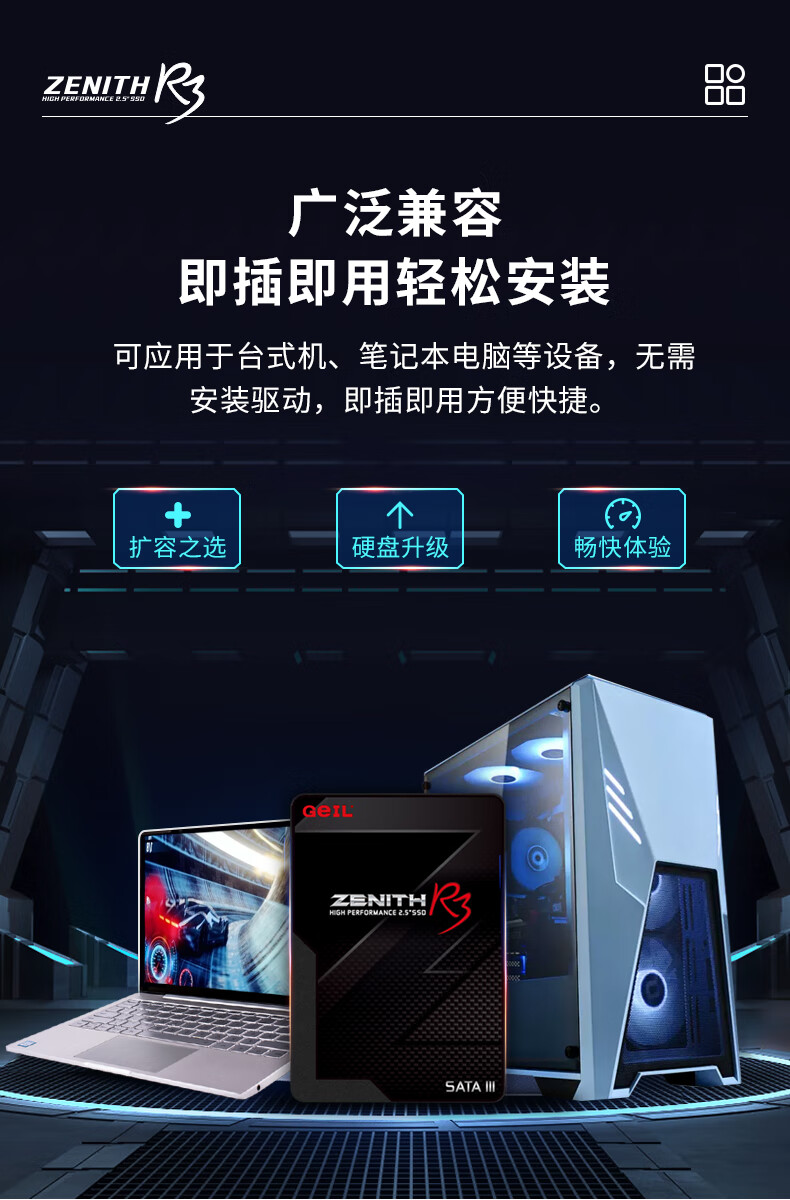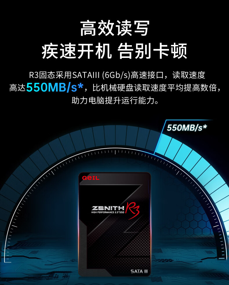 “GEIL/金邦”R3 256G SSD固態(tài)硬盤 單塊裝(SATA3.0接口臺式機筆記本通用高速500MB/S R3系列)