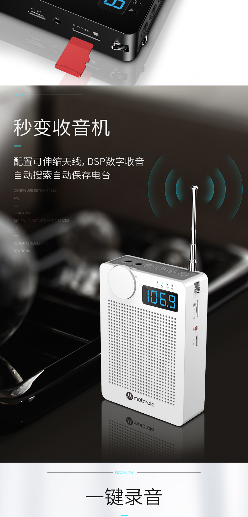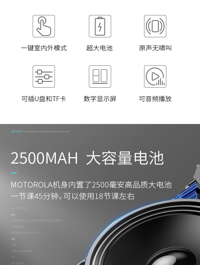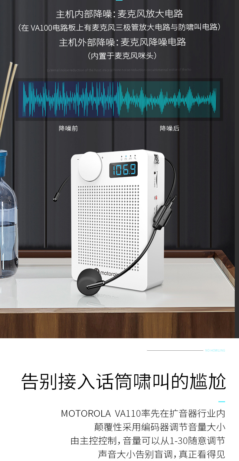 “Motorola/摩托羅拉”VA110 小蜜蜂擴(kuò)音器 單個裝(白色無線便攜教學(xué)專用導(dǎo)游話筒插卡u盤收音機(jī))