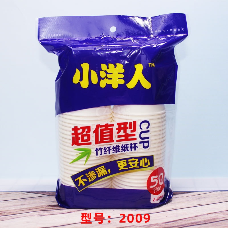 “Xiaoyangren/小洋人”XYR-2009 竹纖維紙杯 單包裝(一次性豆奶杯超值型茶咖啡奶茶竹纖維杯不滲漏環(huán)保加厚超值型紙杯50只/包)