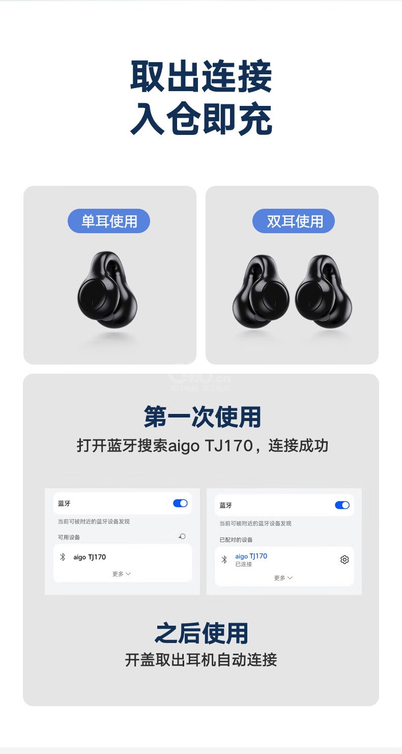 耳機 2 枚充電艙 1 個充電線 1 條使用指南 1 本(含三包卡)合格證 1 張* 產(chǎn)品配件以包裝內(nèi)實物為準。