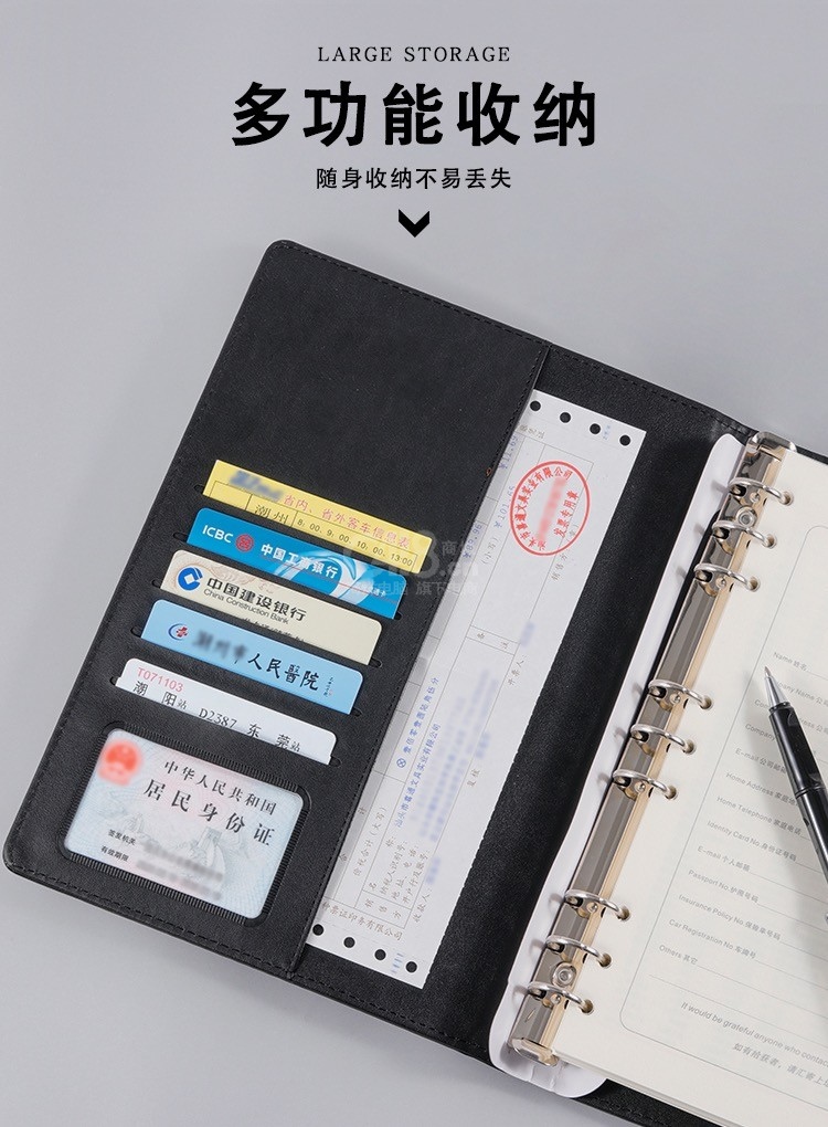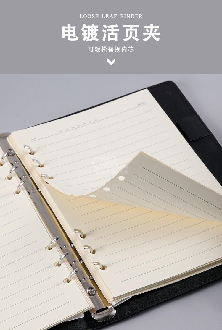 “HEETON/喜通”809 高級活頁筆記本 單本裝(黑色皮面活頁本16K商務記事本辦公活頁筆記本日記本90張80g道林紙)