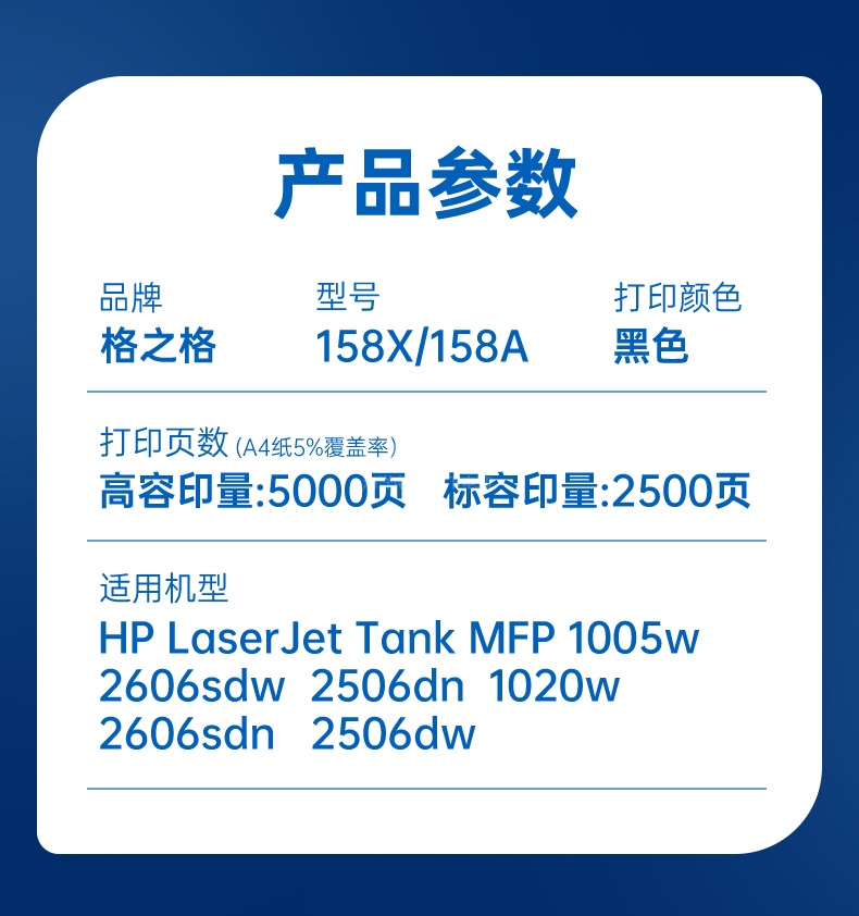 | 適用機(jī)型 | W1580A:HP LaserJet Tank MFP 1005w 1020w 2506dn 2506dw 2606sdn 2606dw 2606sdw; W1108A:HP;Laser NS1020;1020c;1020w;mfp 1005;1005c;1005w; Q7516A:HP LaserJet 5200L/5200/5200n/5200dtn/5200LX/5200TN Canon LBP-3500; CZ192A:HP;M435nw;M701;M706 |