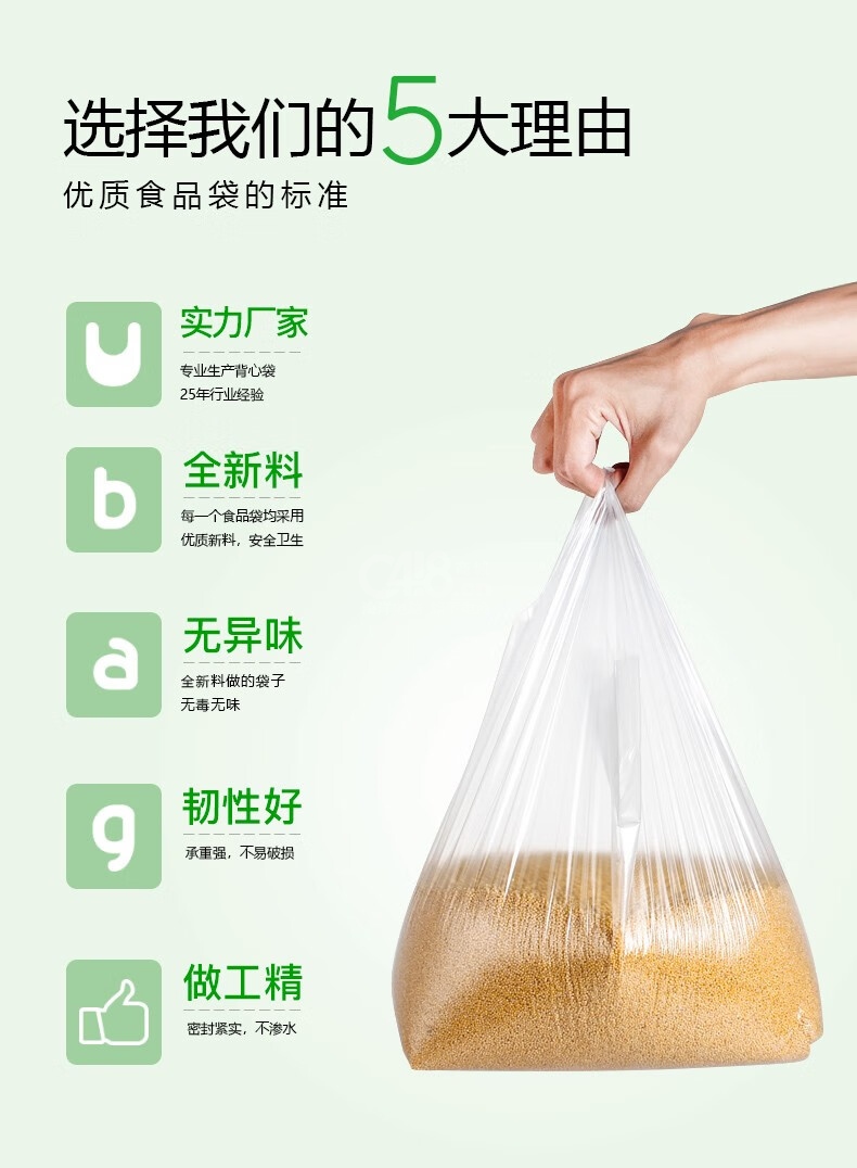 “ubag/優(yōu)袋”普通款18*29 塑料袋 單捆裝(白色食品塑料袋外賣打包方便袋背心手提裝熟食早餐透明袋子100個(gè)/捆)