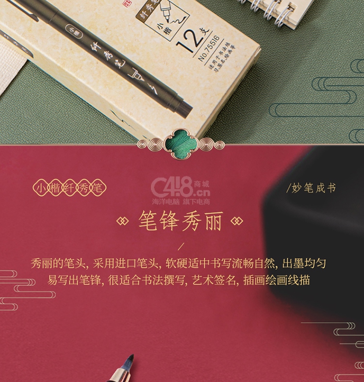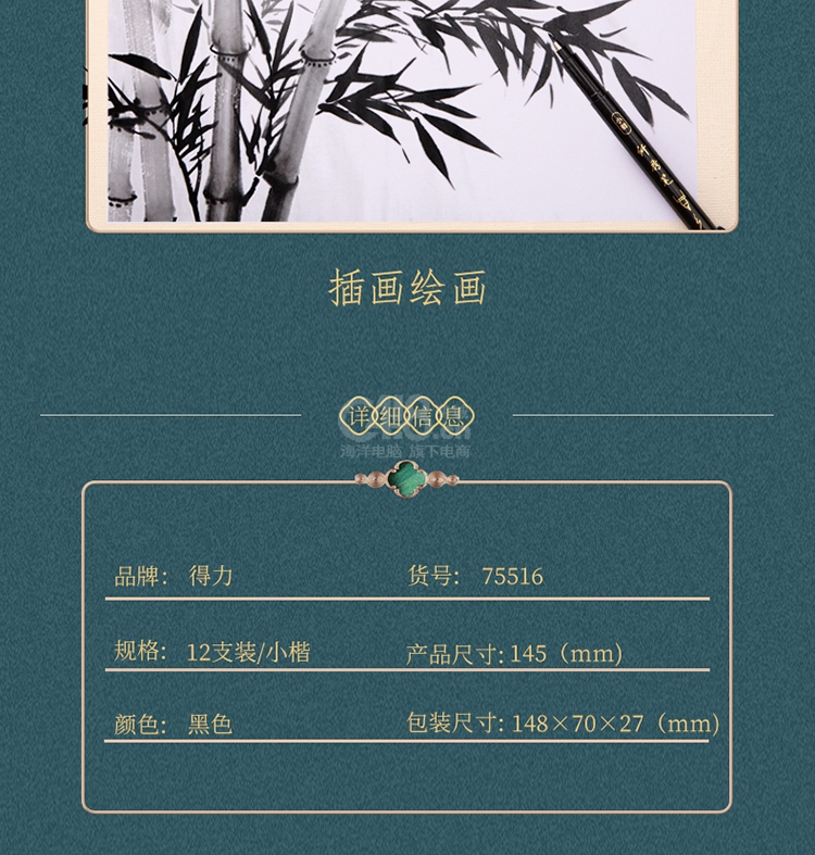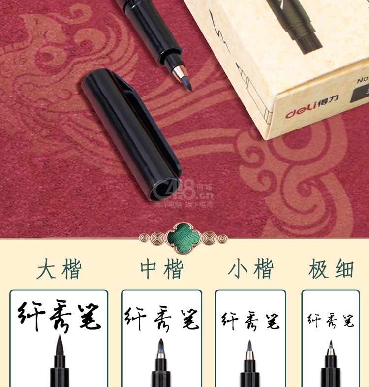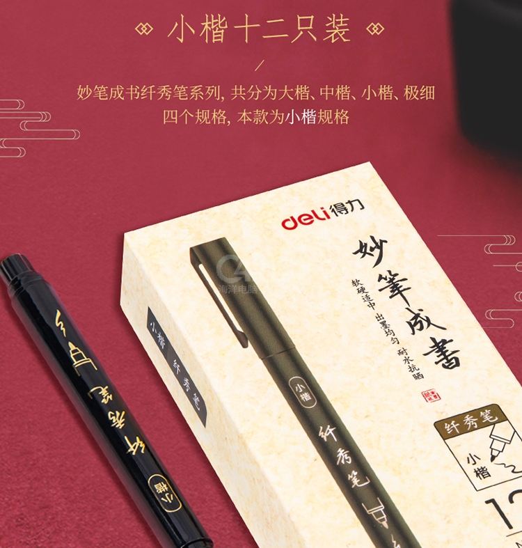 “deli/得力”No.75516 纖秀筆 單盒裝(黑色妙筆成書小楷秀麗筆毛筆練字筆軟筆簽名學(xué)生成人書法練習(xí)12支/盒)