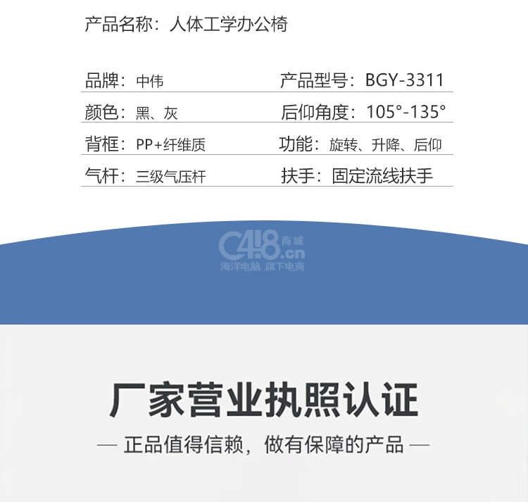 “ZHONGWEI/中偉”fy-3311 人體工學(xué)辦公椅 單把裝(灰色員椅人體工學(xué)椅轉(zhuǎn)椅家用電腦椅會(huì)議椅學(xué)習(xí)椅)