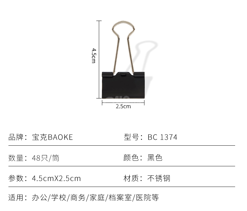 50mm黑色長(zhǎng)尾夾 12只/筒 5筒裝 BC1371