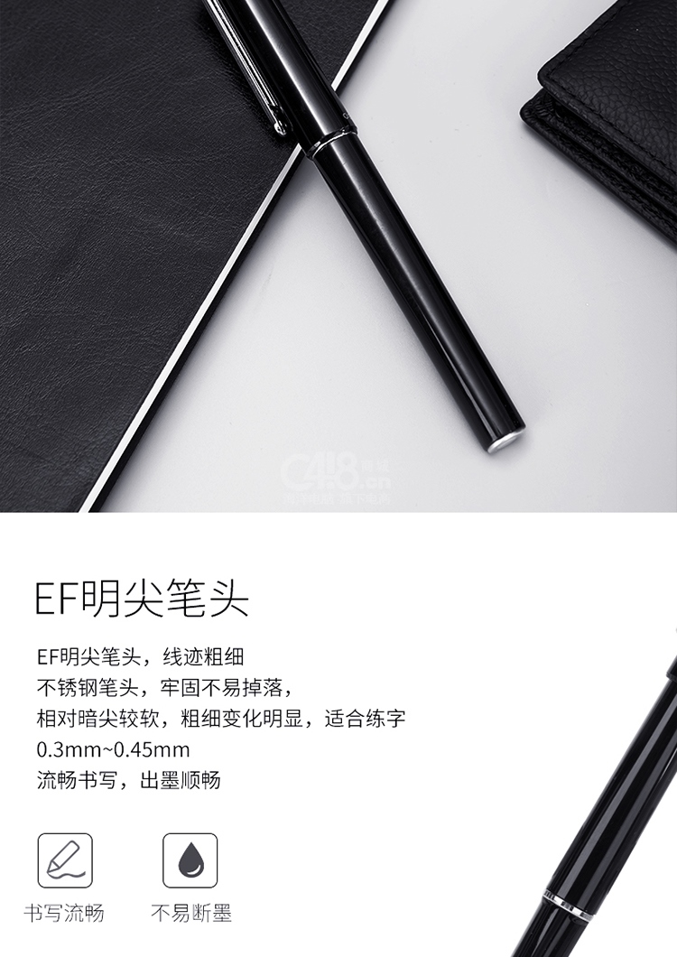 “deli/得力”S160EF 鋼筆 單支裝(黑色EF明尖商務辦公簽字筆書寫練字墨水筆生日禮物考研DL-S160EF)