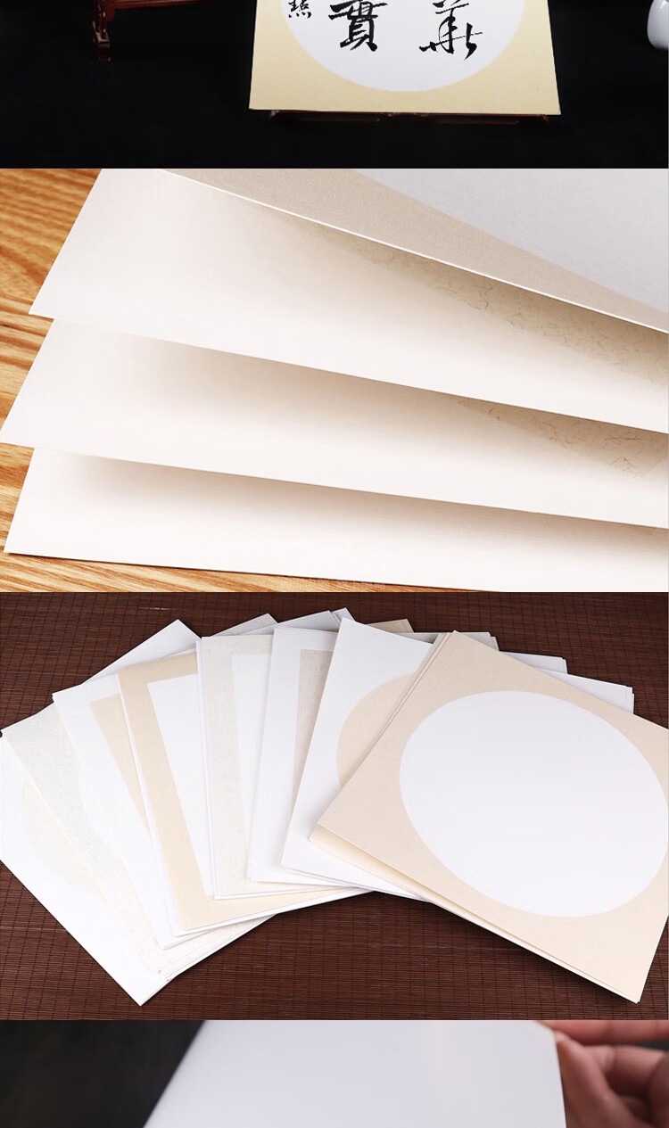 “一海堂”38*38cm 生宣卡紙 單包裝(外麻內白國畫工筆畫書法紙鏡片裝框用硬卡圓形鏡片紙10張/包)